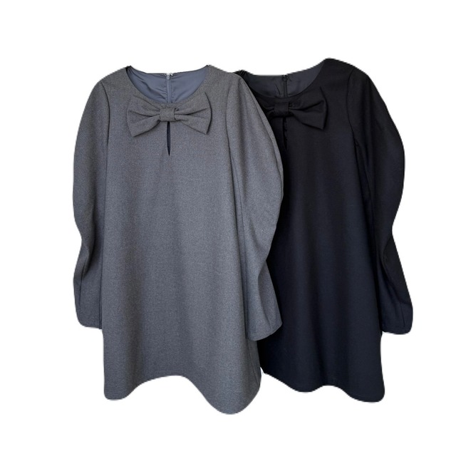 【POINT】 hugiの冬コレクションで人気だったワンピースがアップデートして再登場。 ブランドの象徴である大きなリボンを大胆にあしらった目を引くアイテムです。 フロントのスリットで、上品さの中に程よい抜け感をのある1枚。 袖はhugi定番のオーバルデザインを使用し、ボリューム感が女性らしいシルエットを演出します。 ハリのある素材にこだわり、特別な日のお出かけにも上品で可愛らしくぴったりなアイテムです。 【staff height】 minaho 167cm rika 151cm ※商品の着用方法や取り扱いについては、付属の注意書きを必ずご確認ください。 素材の特性により、写真と実物の色や質感が若干異なる場合がありますのでご了承ください。 【SIZE】FREE 身丈 86cm 身幅 52cm 肩幅 36cm 袖丈 74cm AH 23cm 【COLOR】 GRAY BLACK 【FABRIC】 表地 ポリエステル 79% レーヨン 18% ポリウレタン 3% 裏地 ポリエステル 100% 透け感 なし 光沢感 なし 裏地 あり 伸縮性 なし MADE IN CHINA 商品番号 hug0256WN