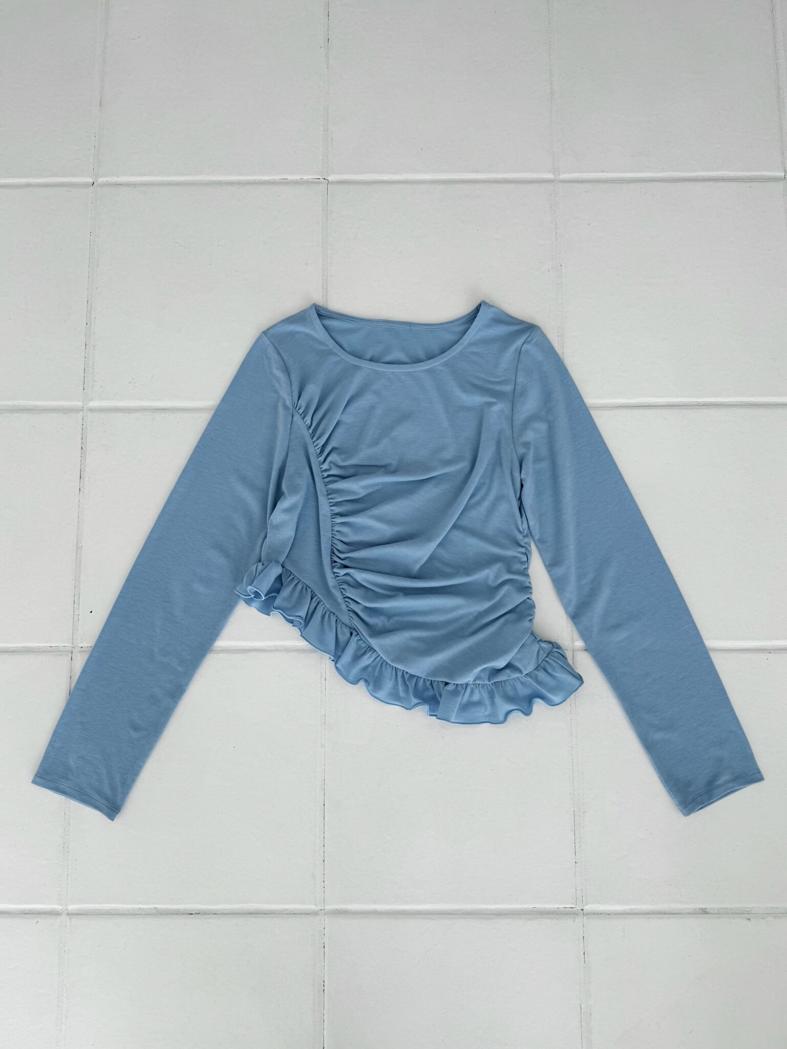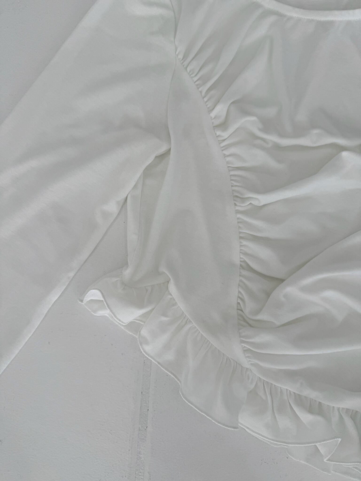 ボリュームたっぷりなフリルとギャザーがとっても可愛いトップス。