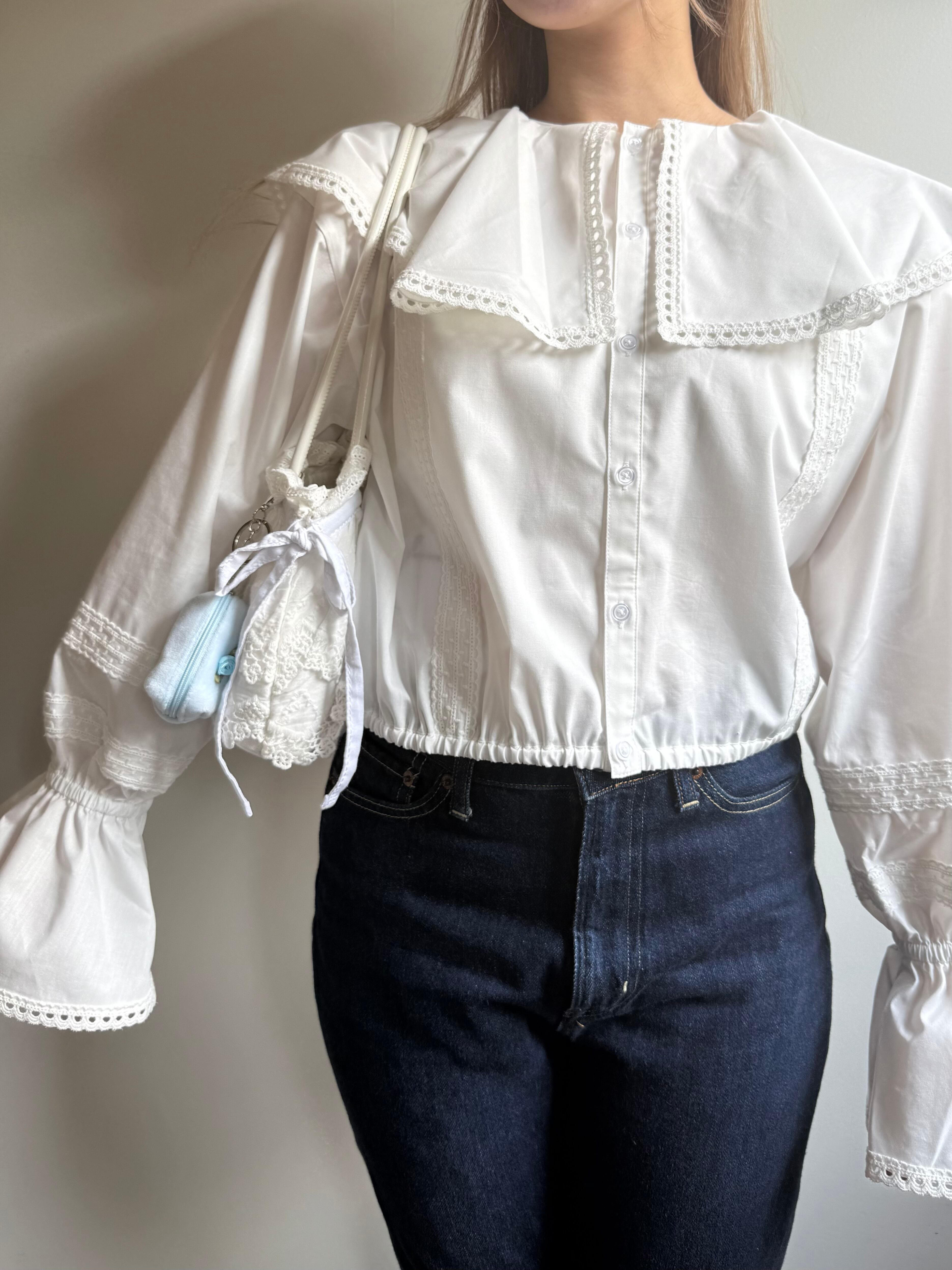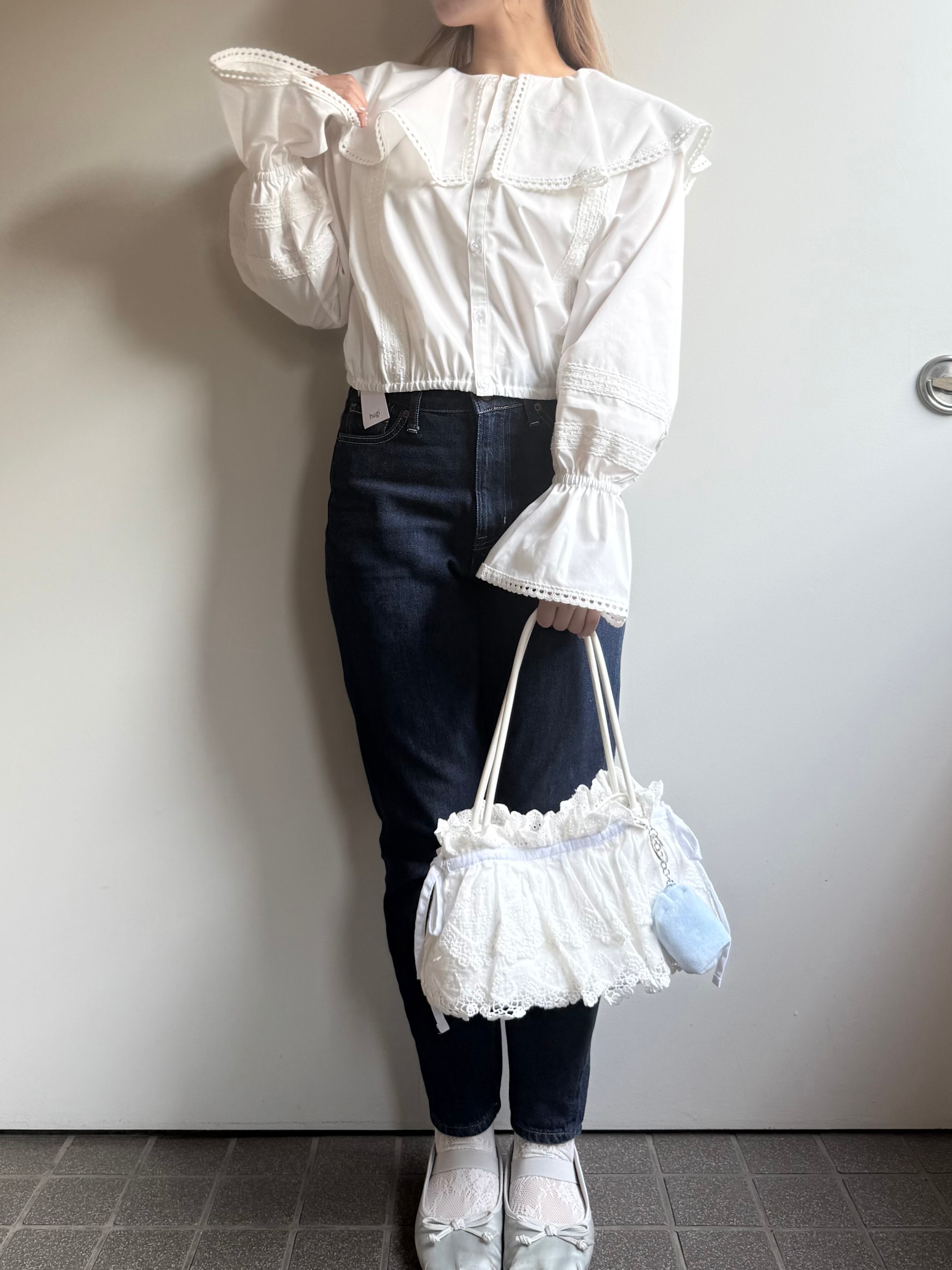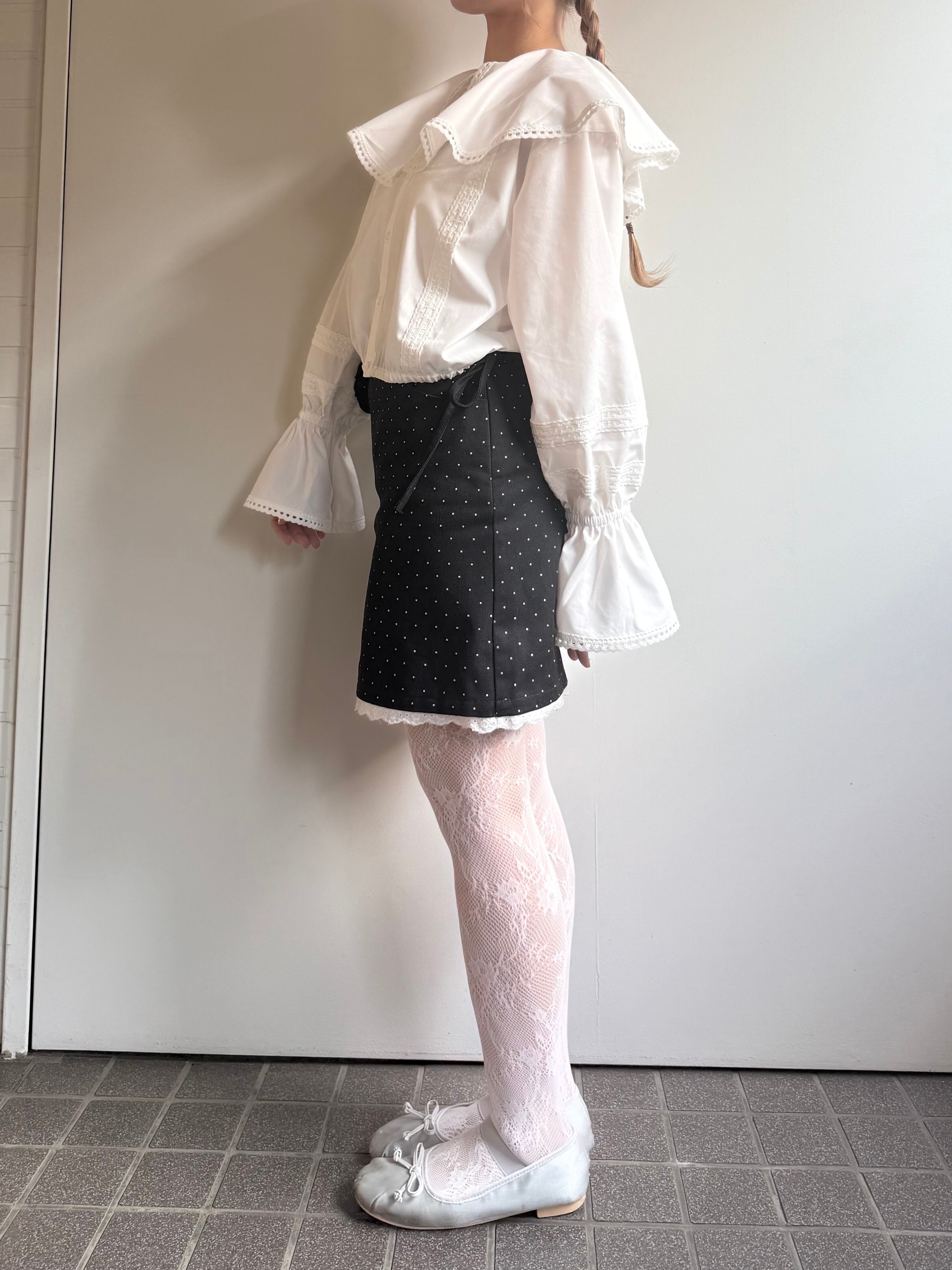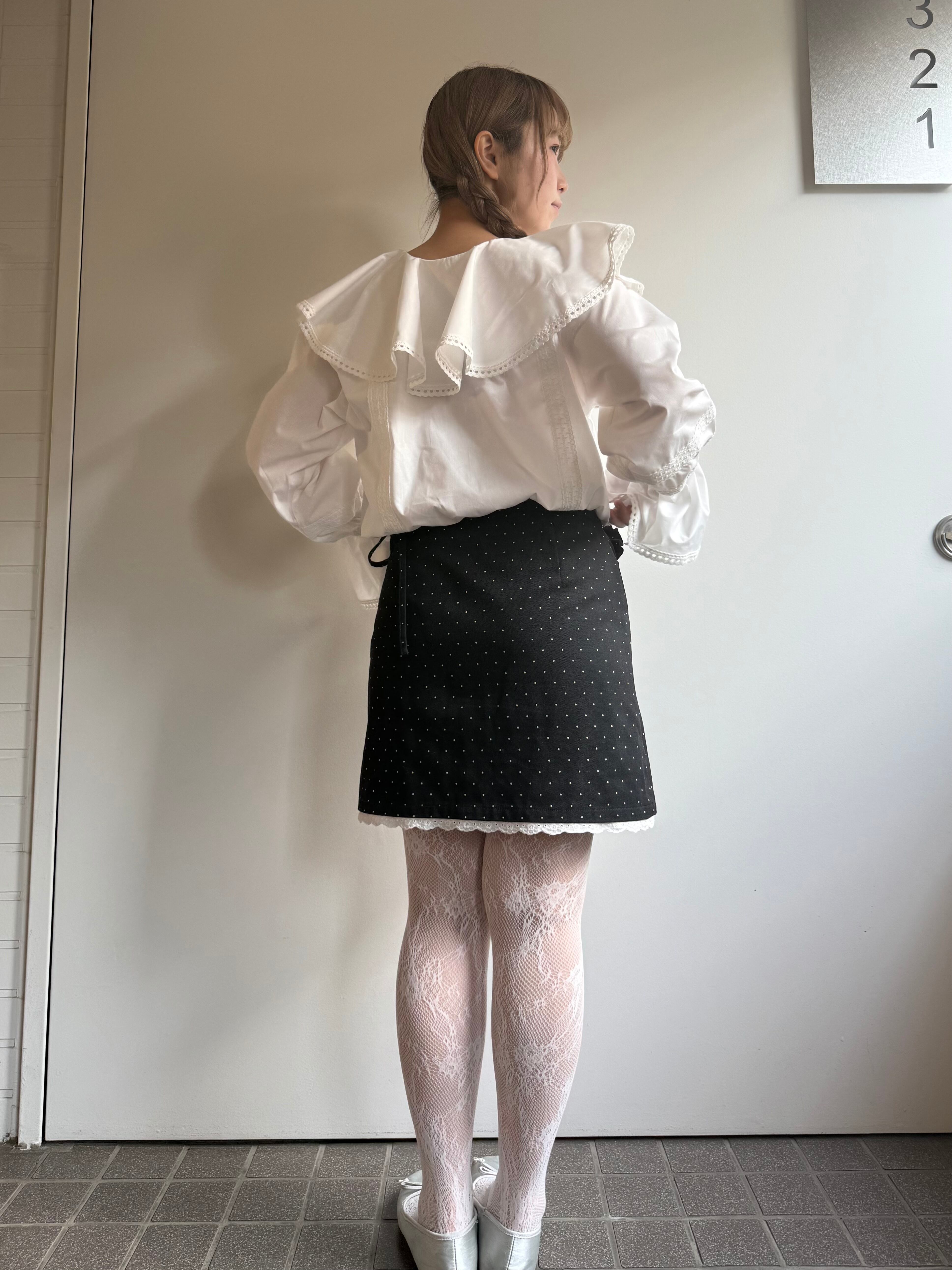 ドット刺繍のレース使いでトレンド感をプラスし、羽織や前後どちらでも着用できマルチウェイなアイテムとなっております。