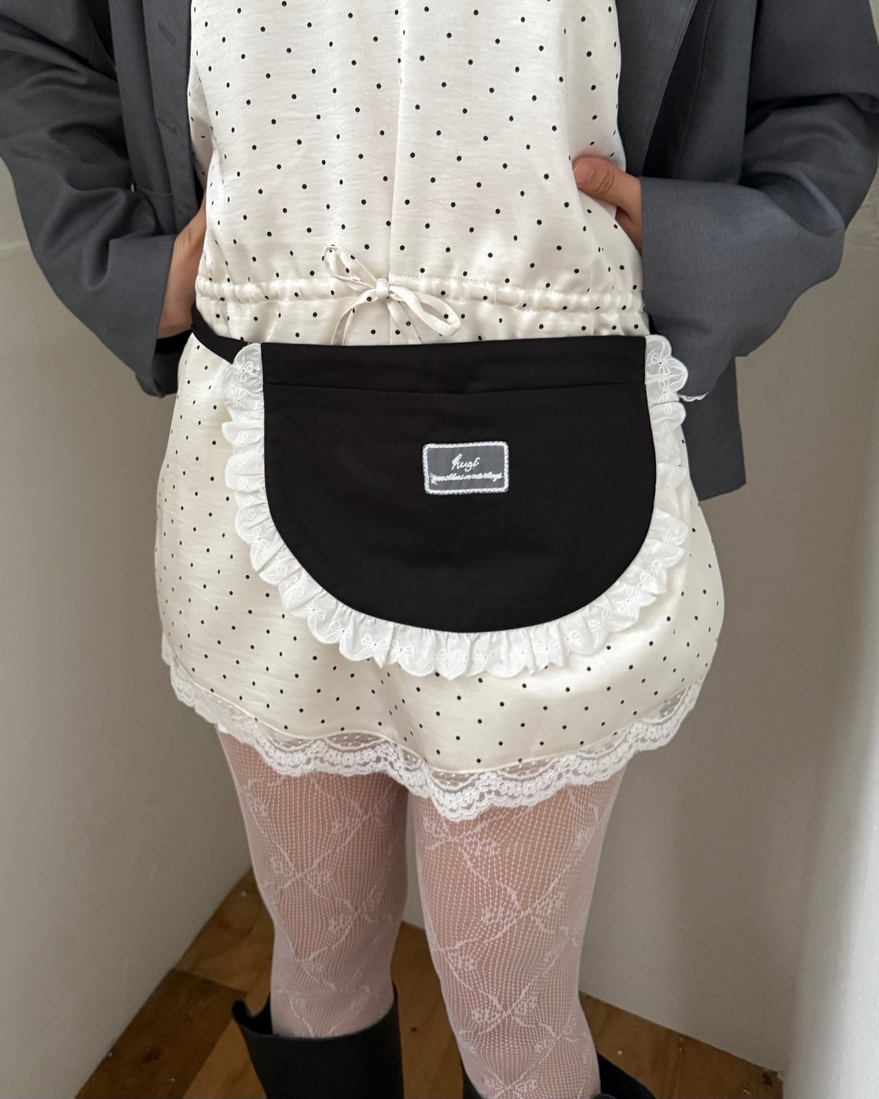 ポケットにはボタンがついており、中ポケットも付属しているので携帯や小物などを入れてエプロンとしてだけでじゃなく、肩掛けなどバッグとしても使えるアイテムとなっております。