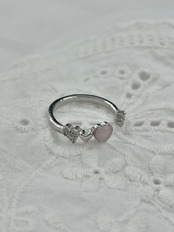 4つのハートが連なったリングです。ピンク×シルバーで可愛らしい雰囲気で付けていただけます。