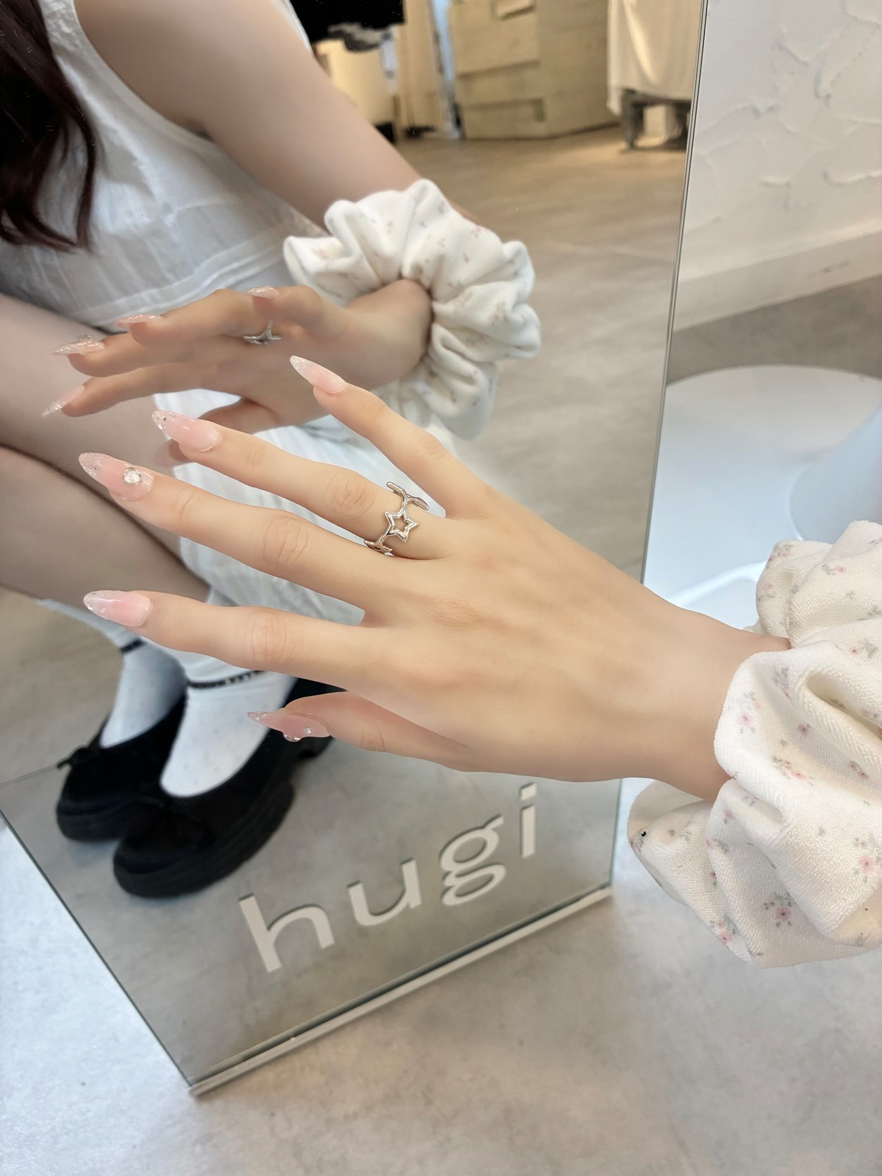 4つ星のデザインリング。星のサイズが全て異なるので雰囲気に合わせてリングをつけていただけます。