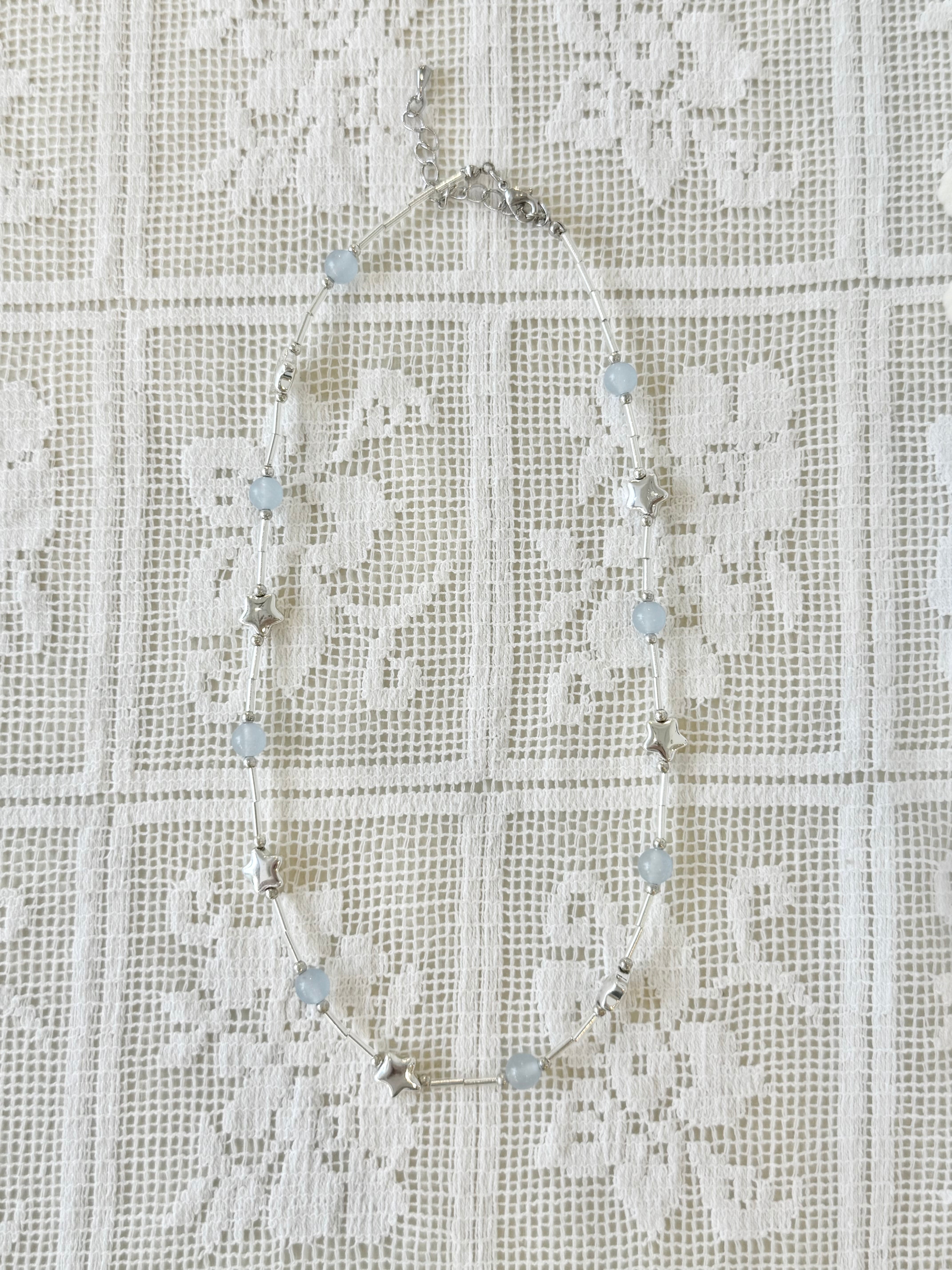 シルバーのスターにビーズが組み合わされたネックレス。夏らしい爽やかな印象で使っていただけます。