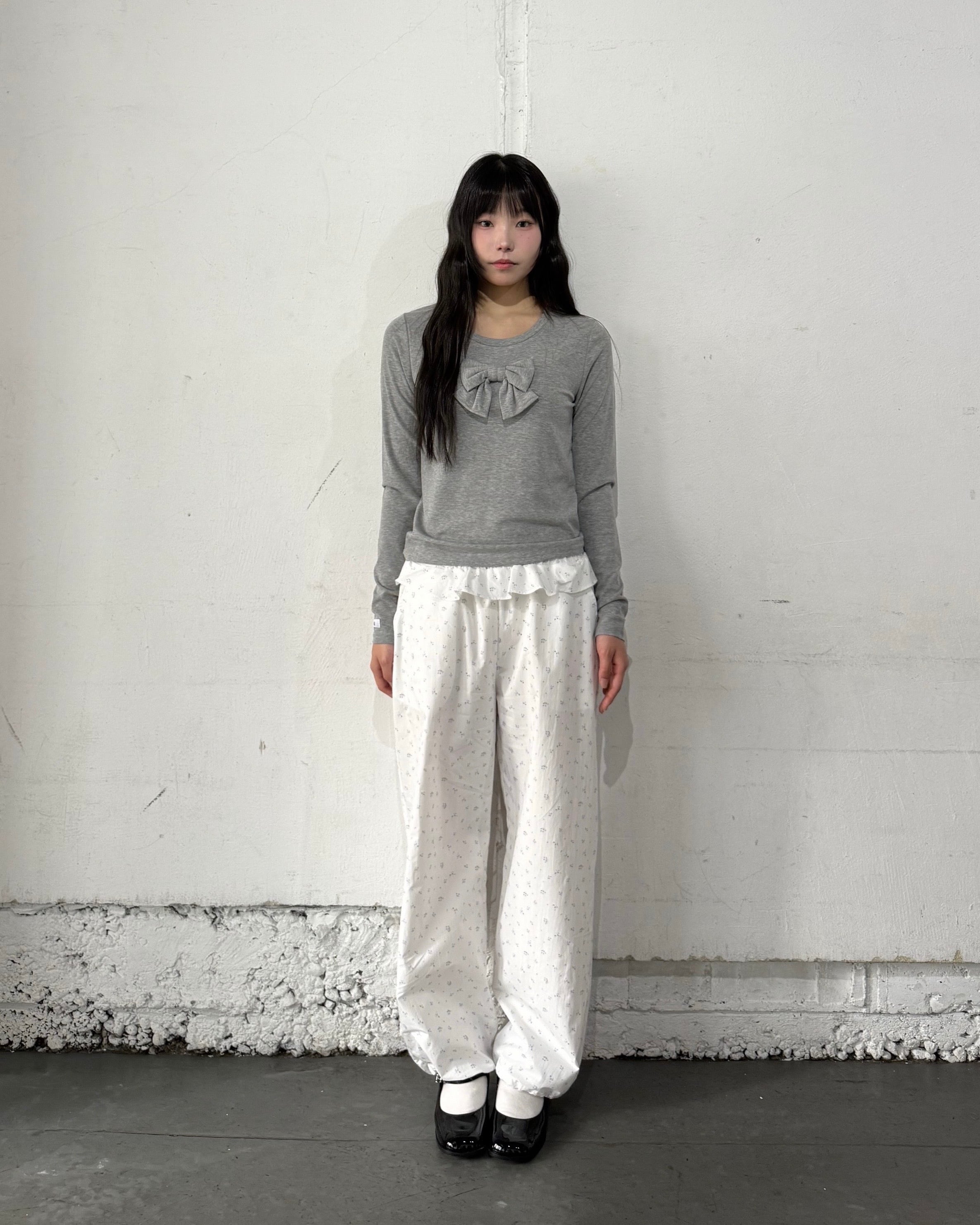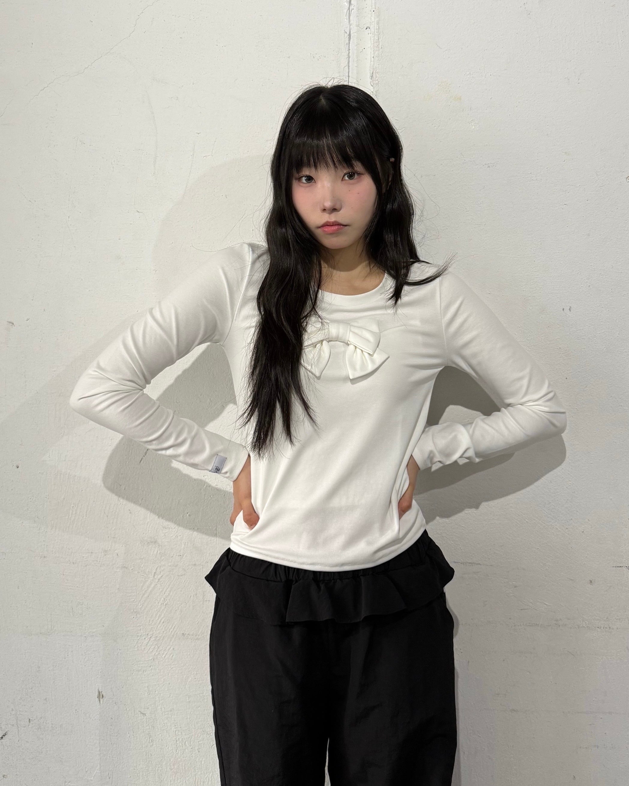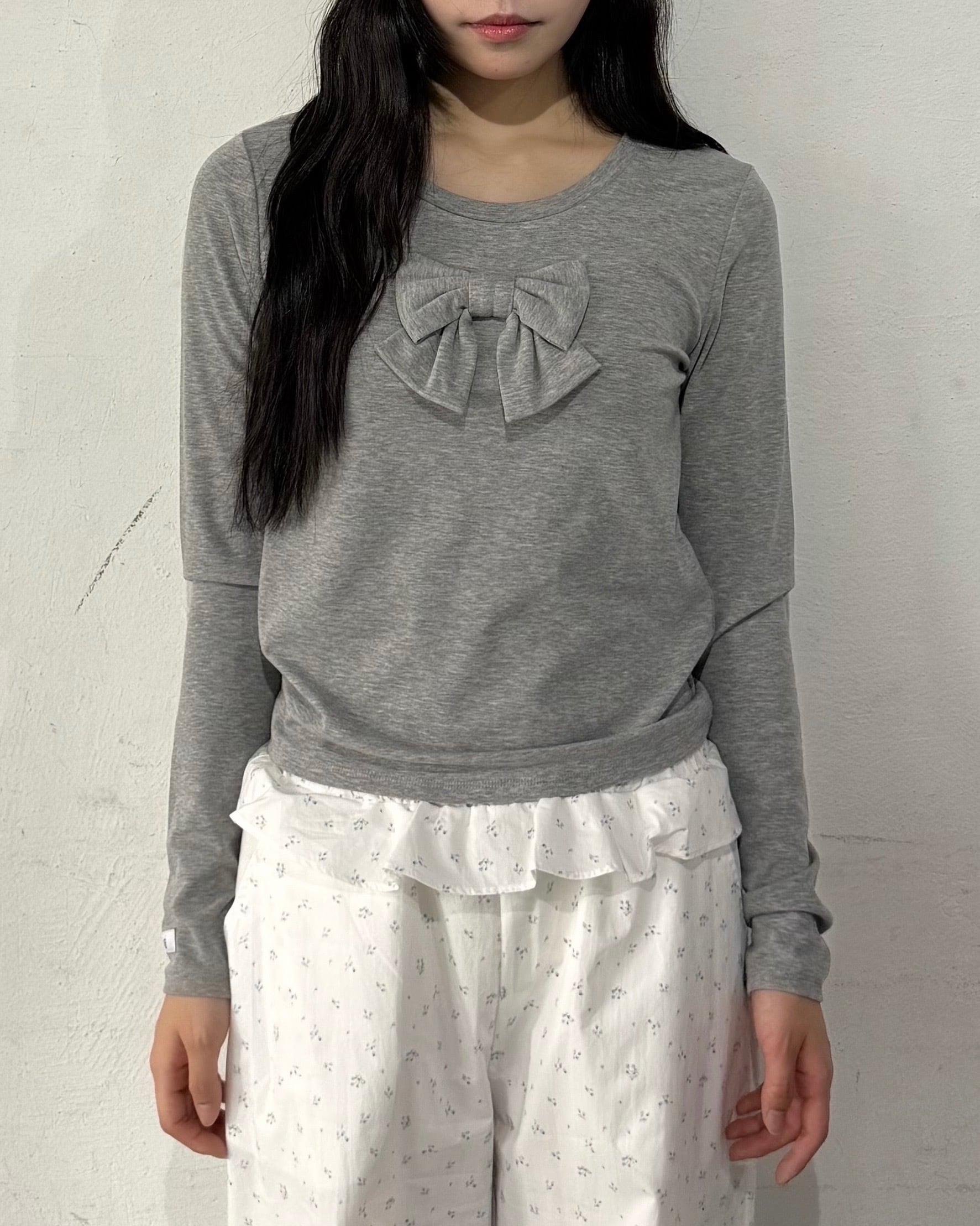 縫い付けタイプなので動いても形が崩れることがなくカジュアルな印象になりやすいトップスも可愛らしい雰囲気に。
