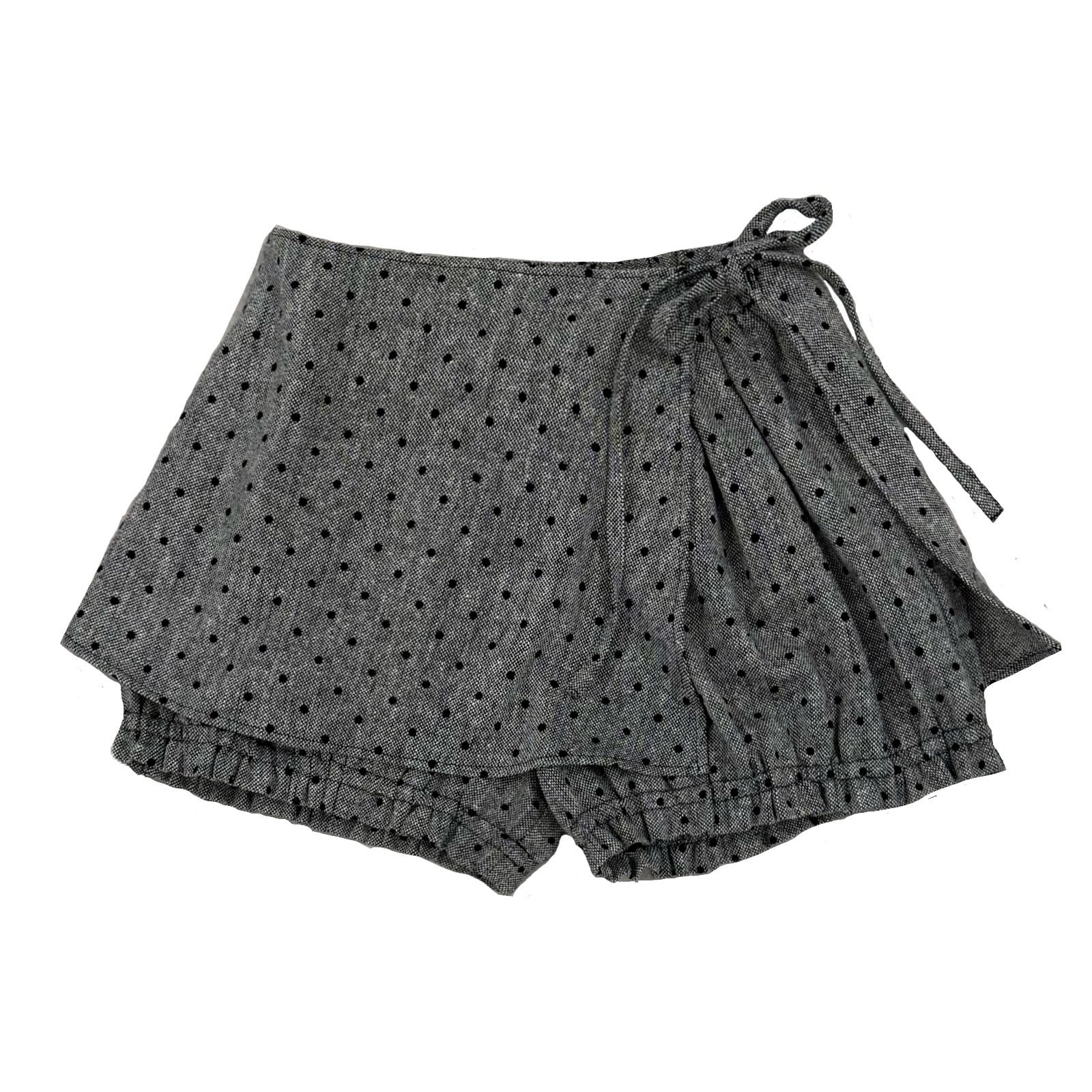 秋にぴったりな巻きスカート風デザインを取り入れたキュロットパンツ。