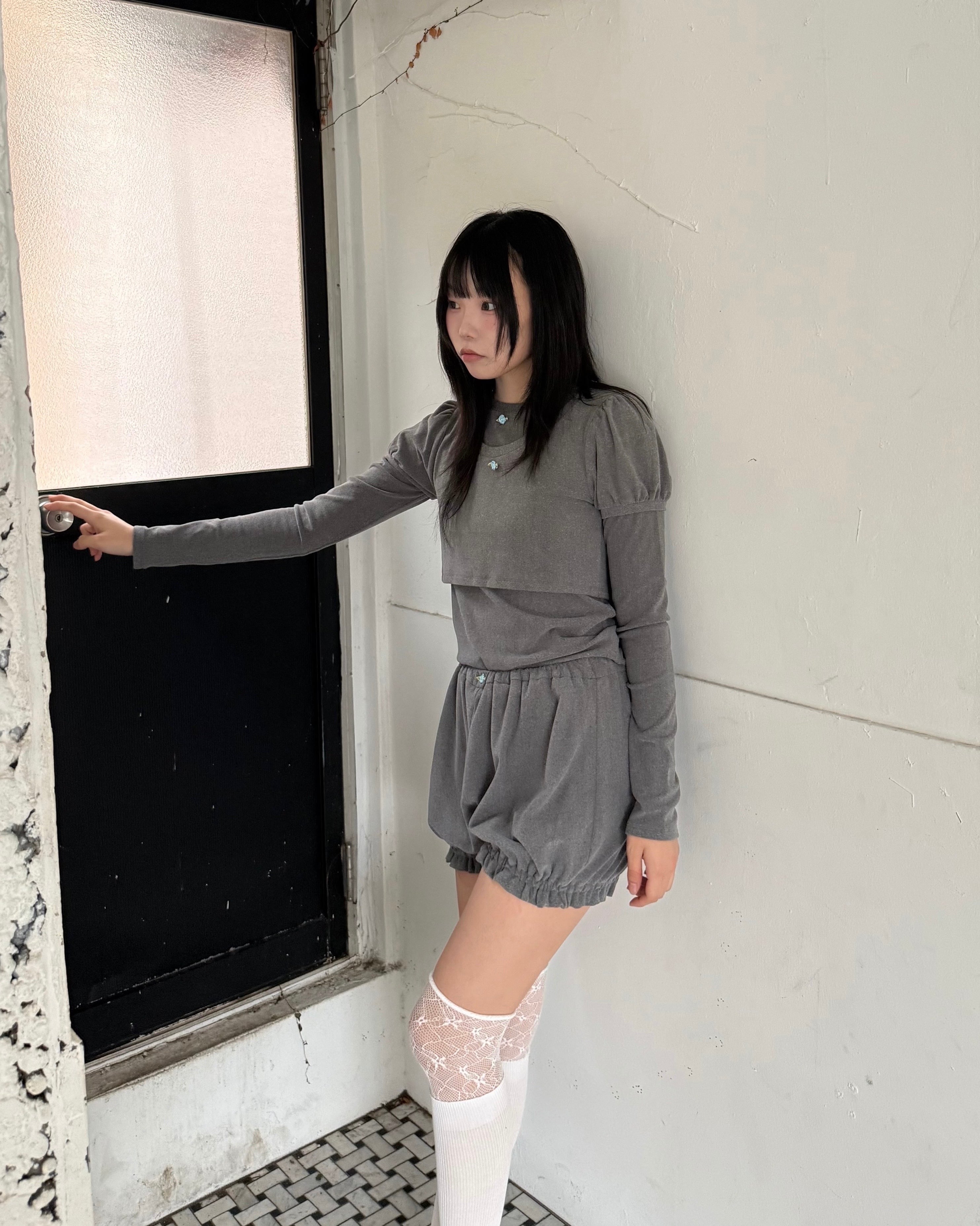 MINI ROSE LAYERED TOPS(hug0234AU)と同じ素材を使い、ミニローズがウエスト部分に施されているため、トップスをインにするコーディネートだとさらに可愛いく着ていただけます。