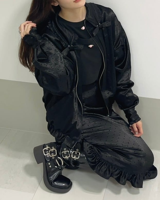 可愛らしいドット柄と、つけ外し可能なリボンがアクセントとなり、個性的な印象を与えてくれます。さまざまなスタイルに合わせやすいのででんなアイテムとも相性が良いアイテムです。