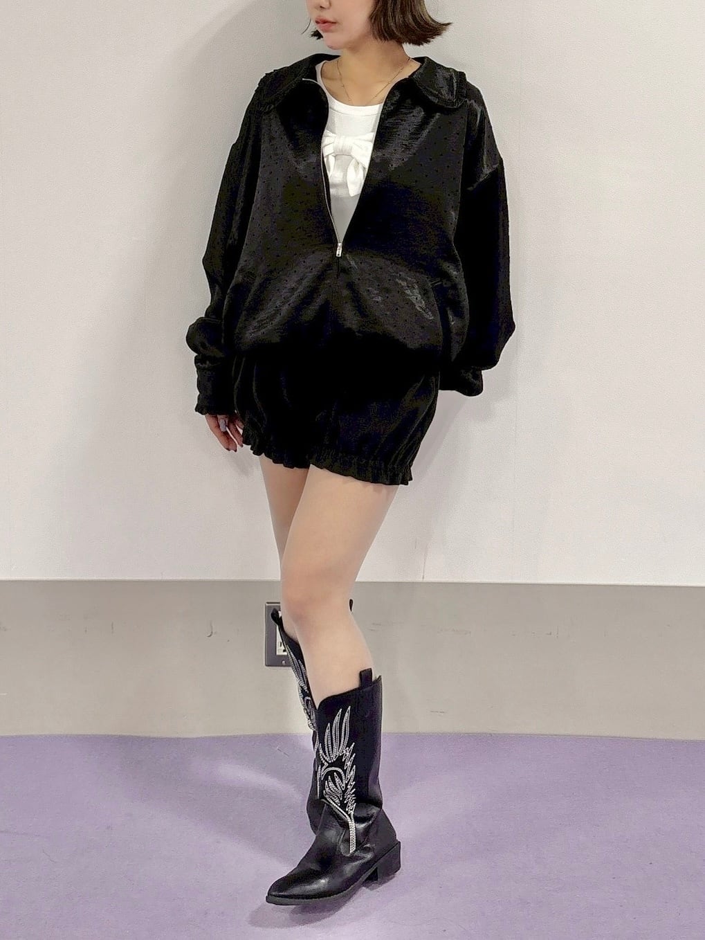 光沢感のあるブルゾンで、柔らかい素材が心地よいアイテムです。