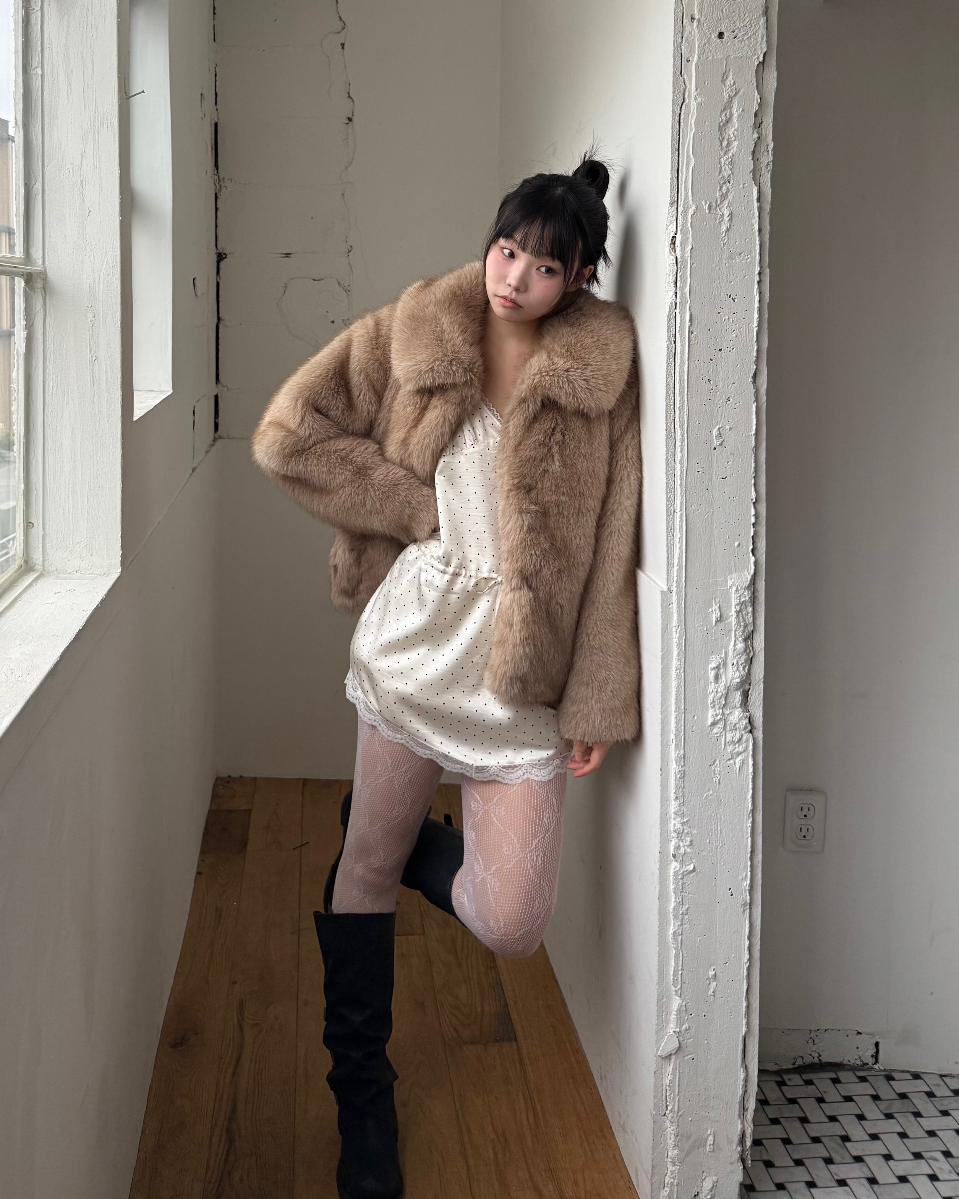 hugiから初のファーコートが登場。軽やかな着心地でアウター特有の重さを感じさせず、シンプルなデザインなのでどんなコーディネートもお上品に着こなしていただけます。便利なポケット付きでスマートフォンなどの小物も収納可能です。
