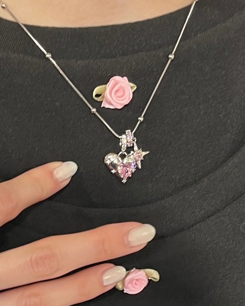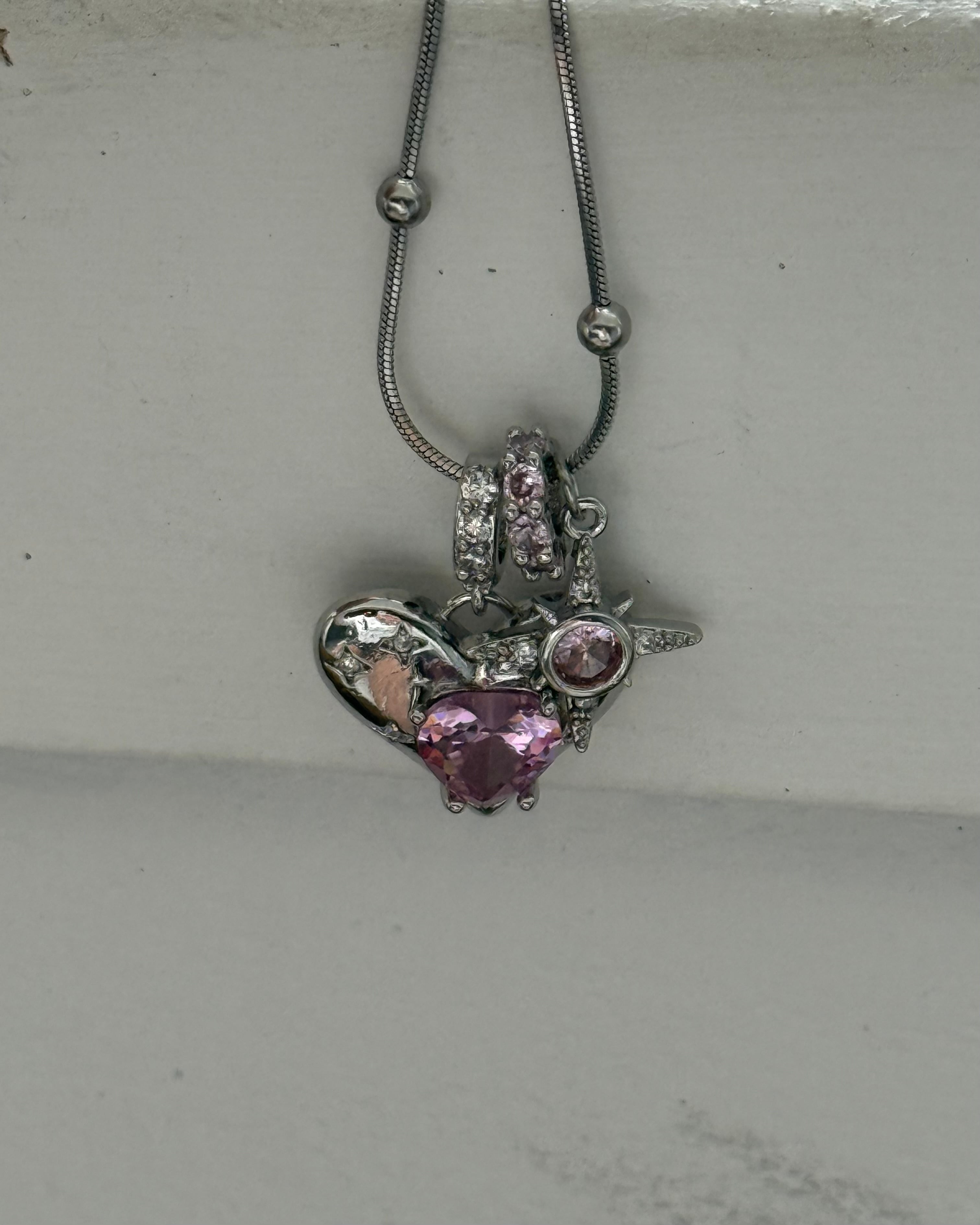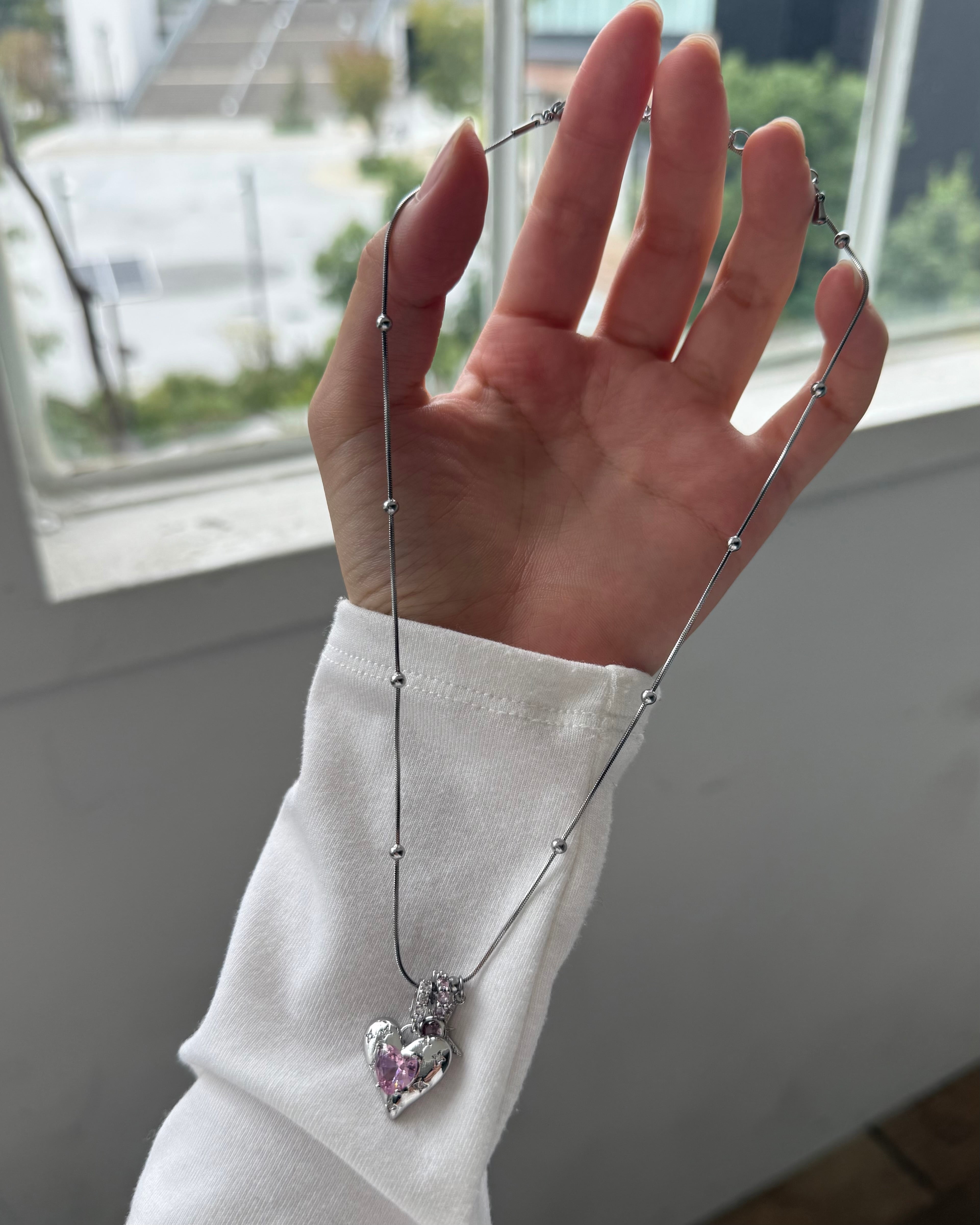 大きなハートにピンクのビジューが埋め込まれているネックレス。