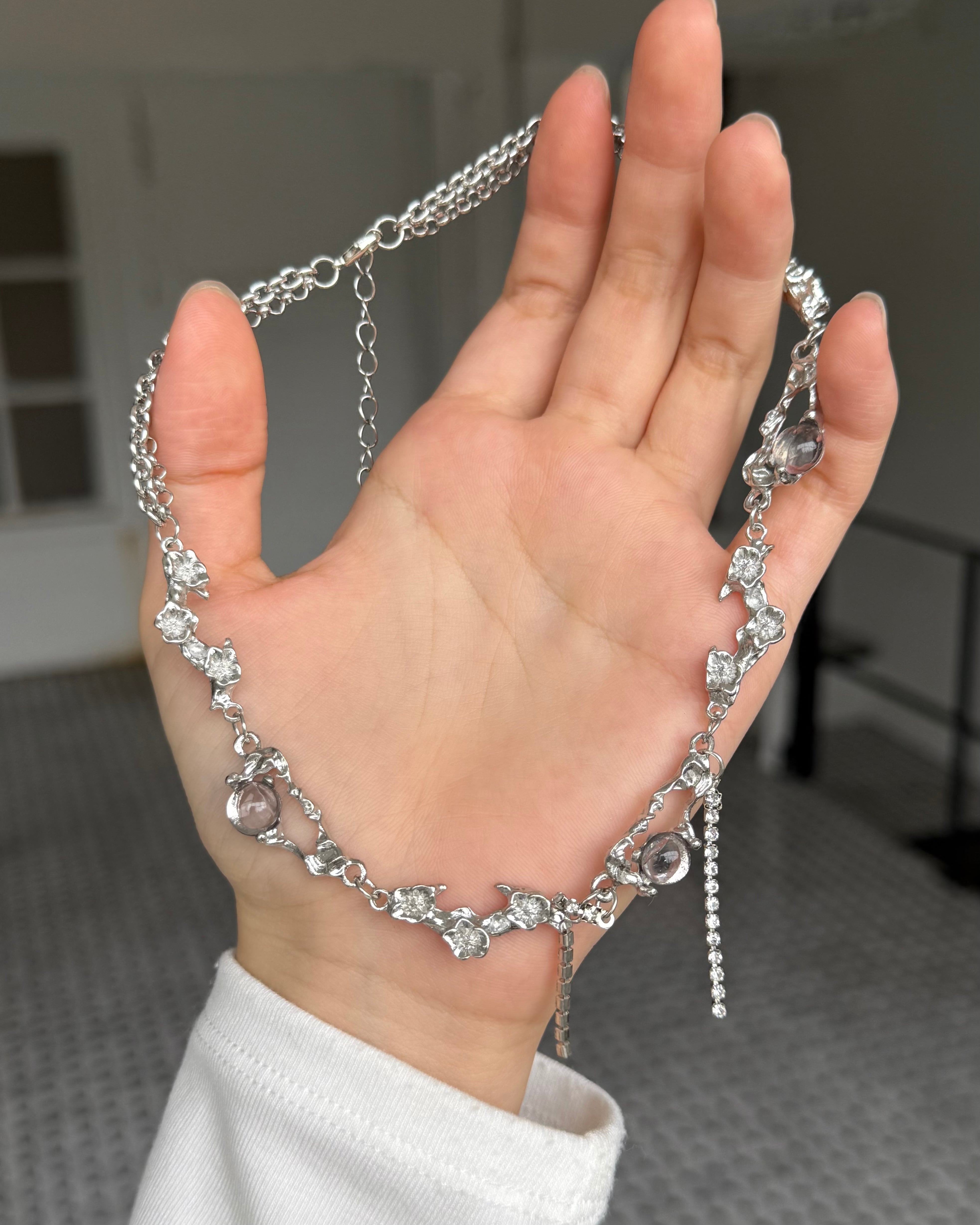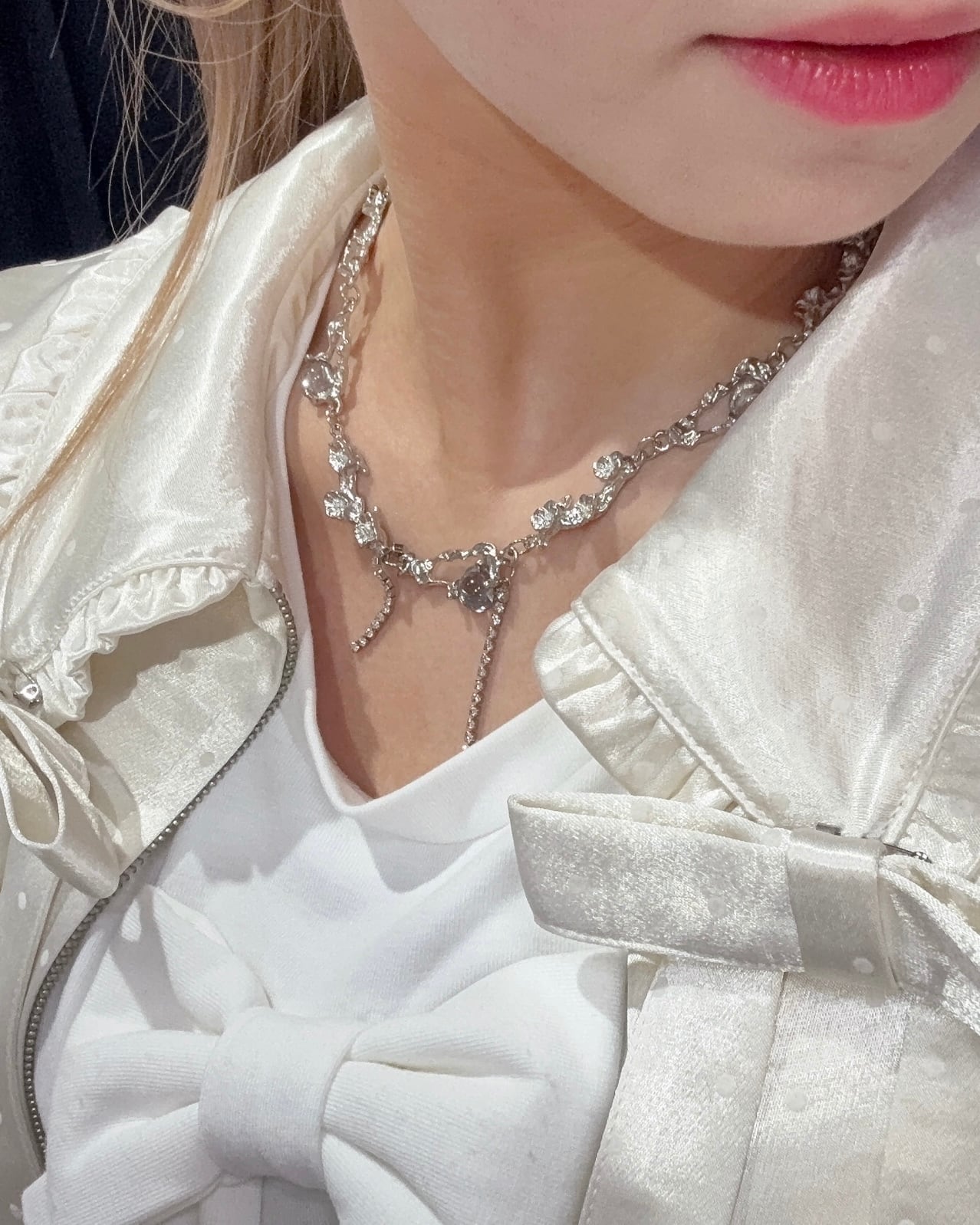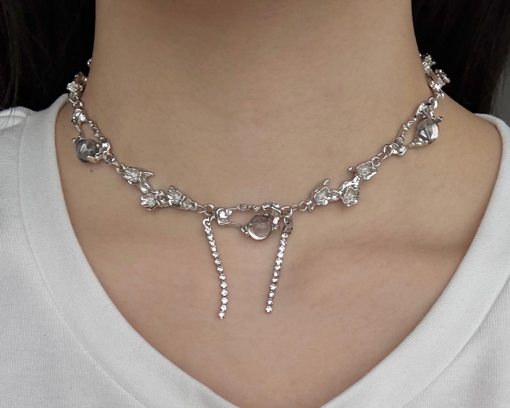 ローズやストーン、ビジューが施された存在感のあるネックレス。