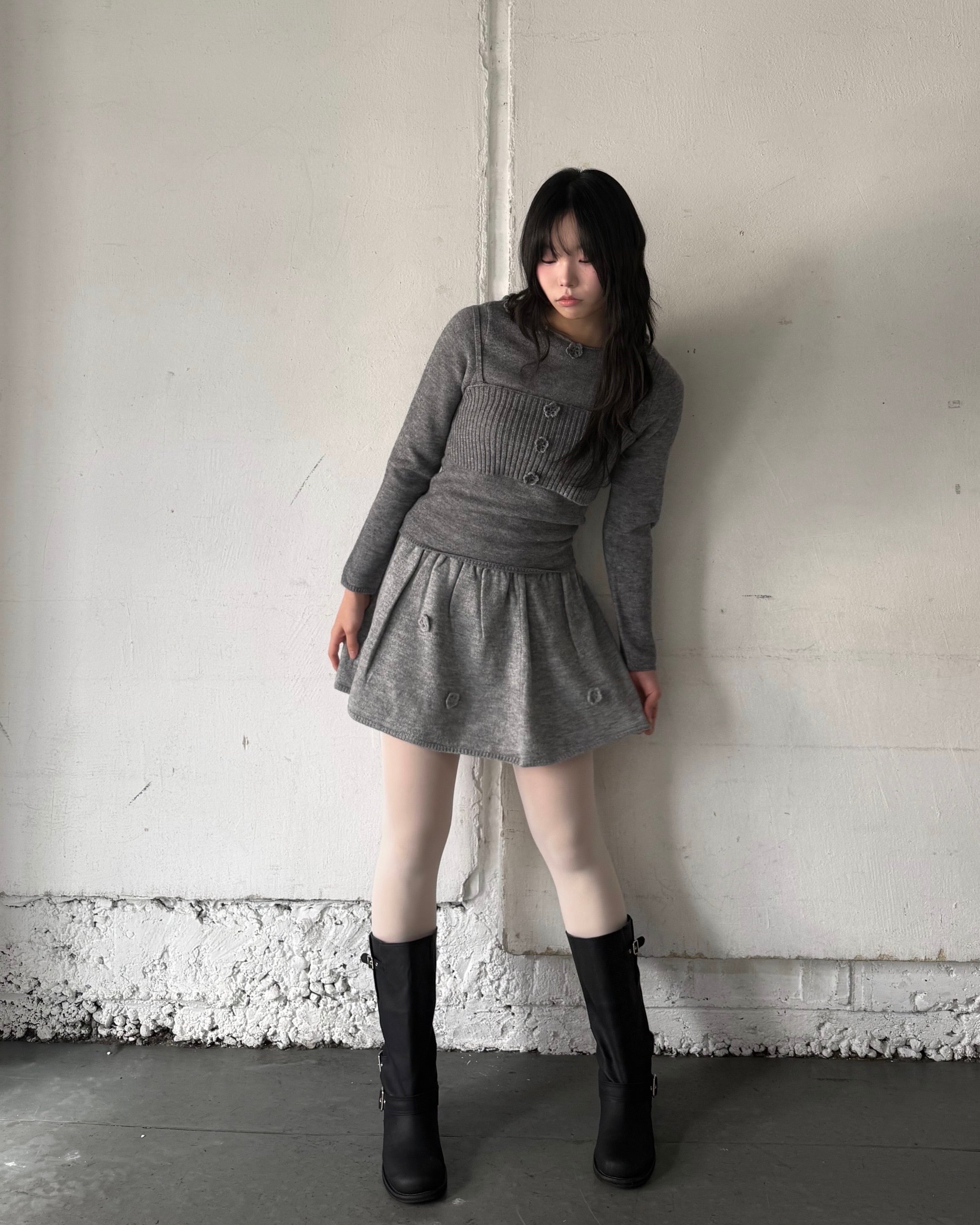 FLOWER KNIT TOPS&BUSTIER (hug0257WN)