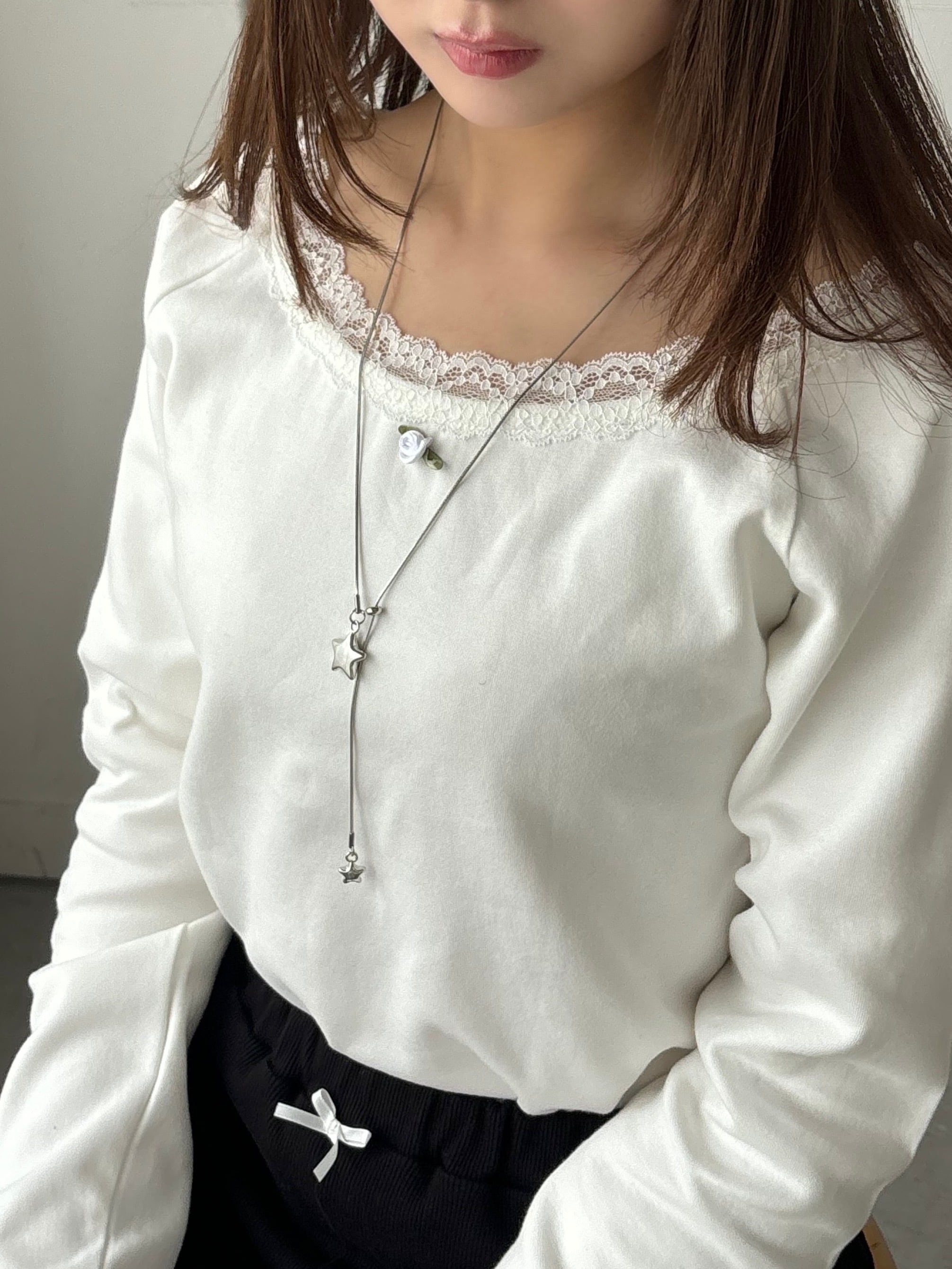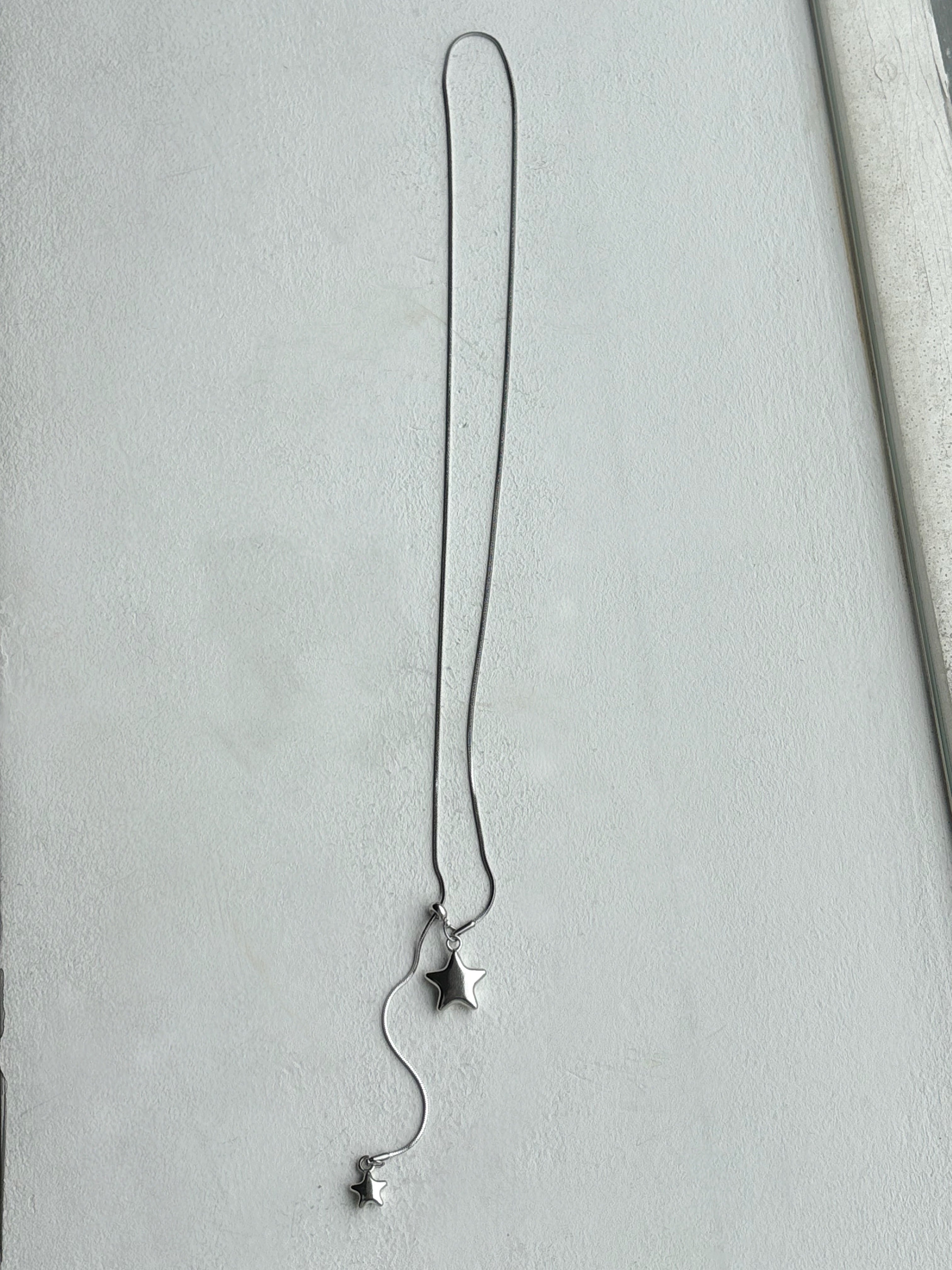 大きさの異なる星モチーフがついたロングタイプのネックレス。