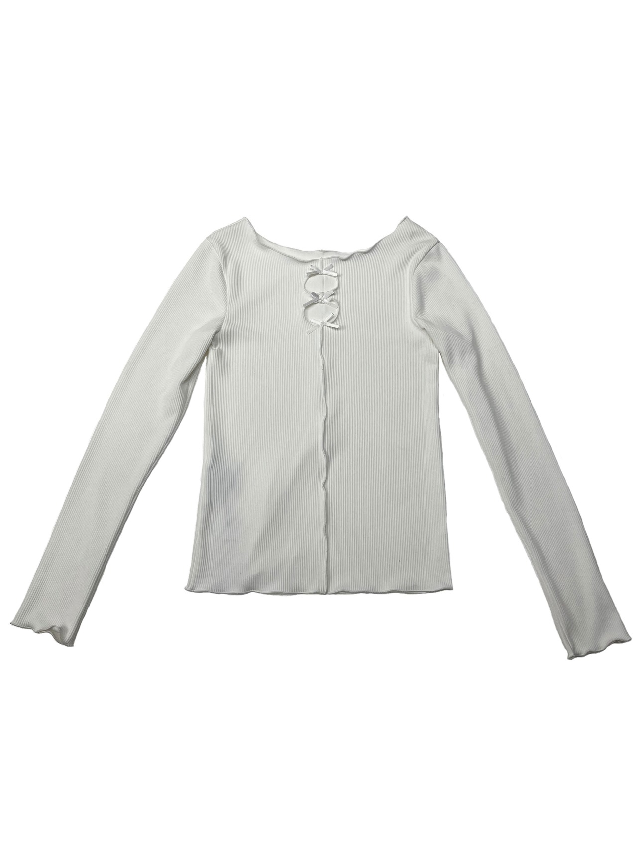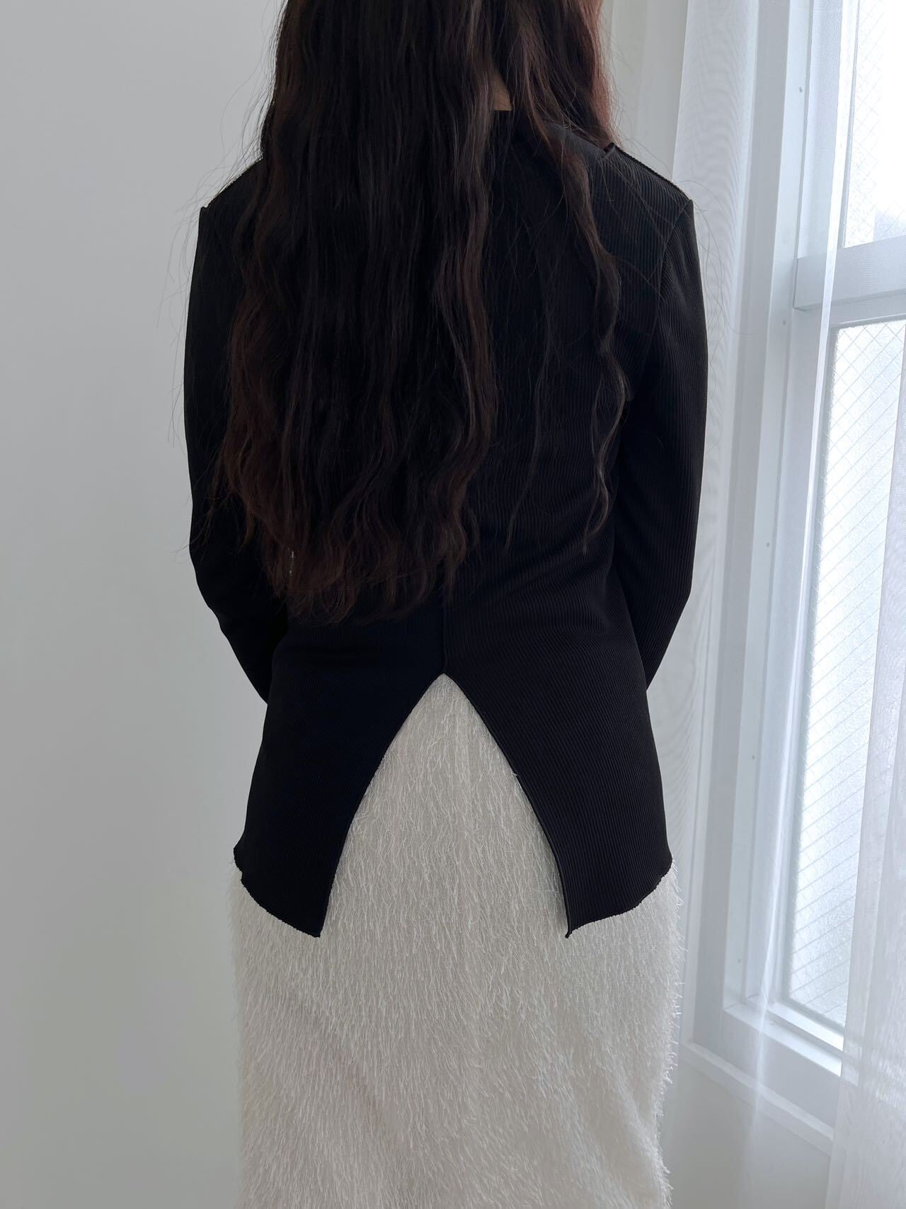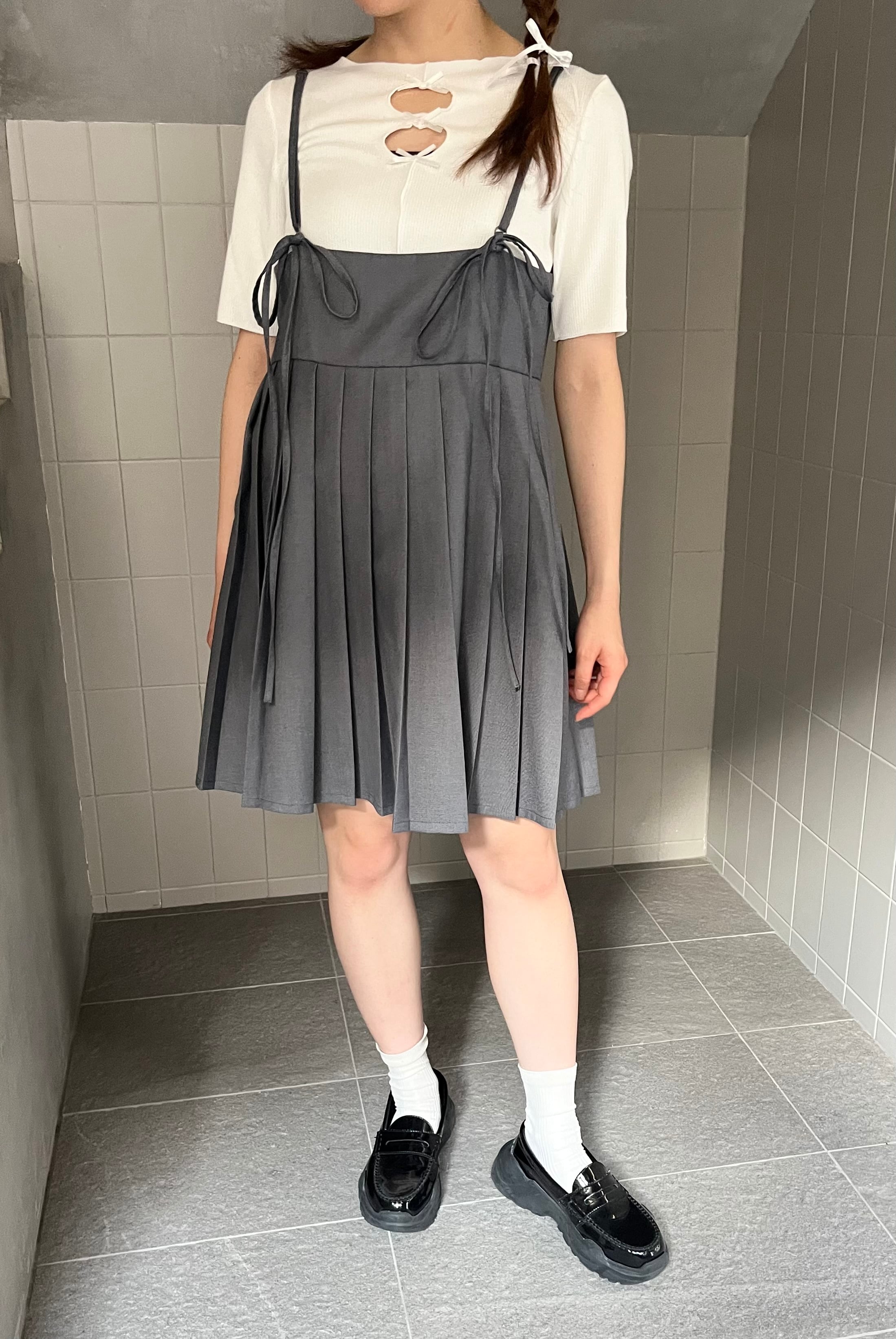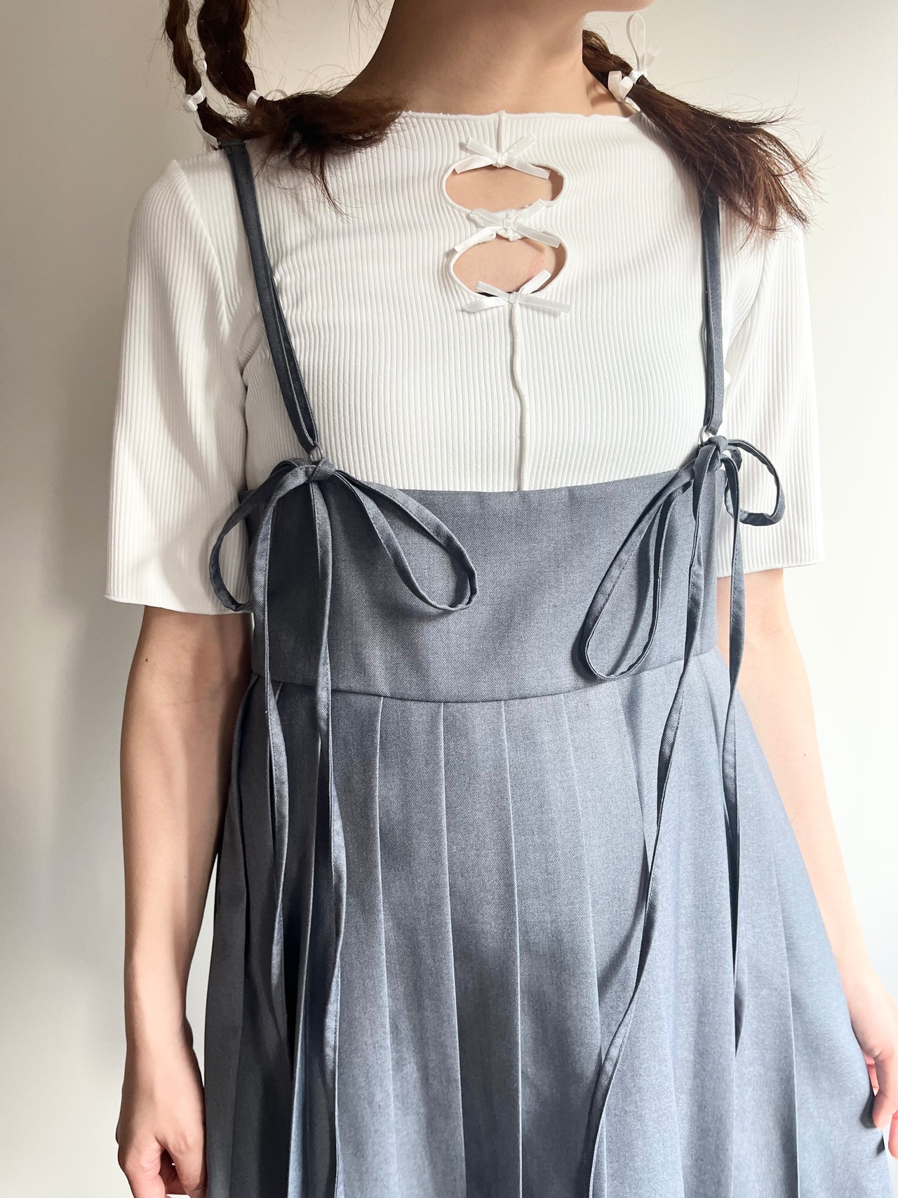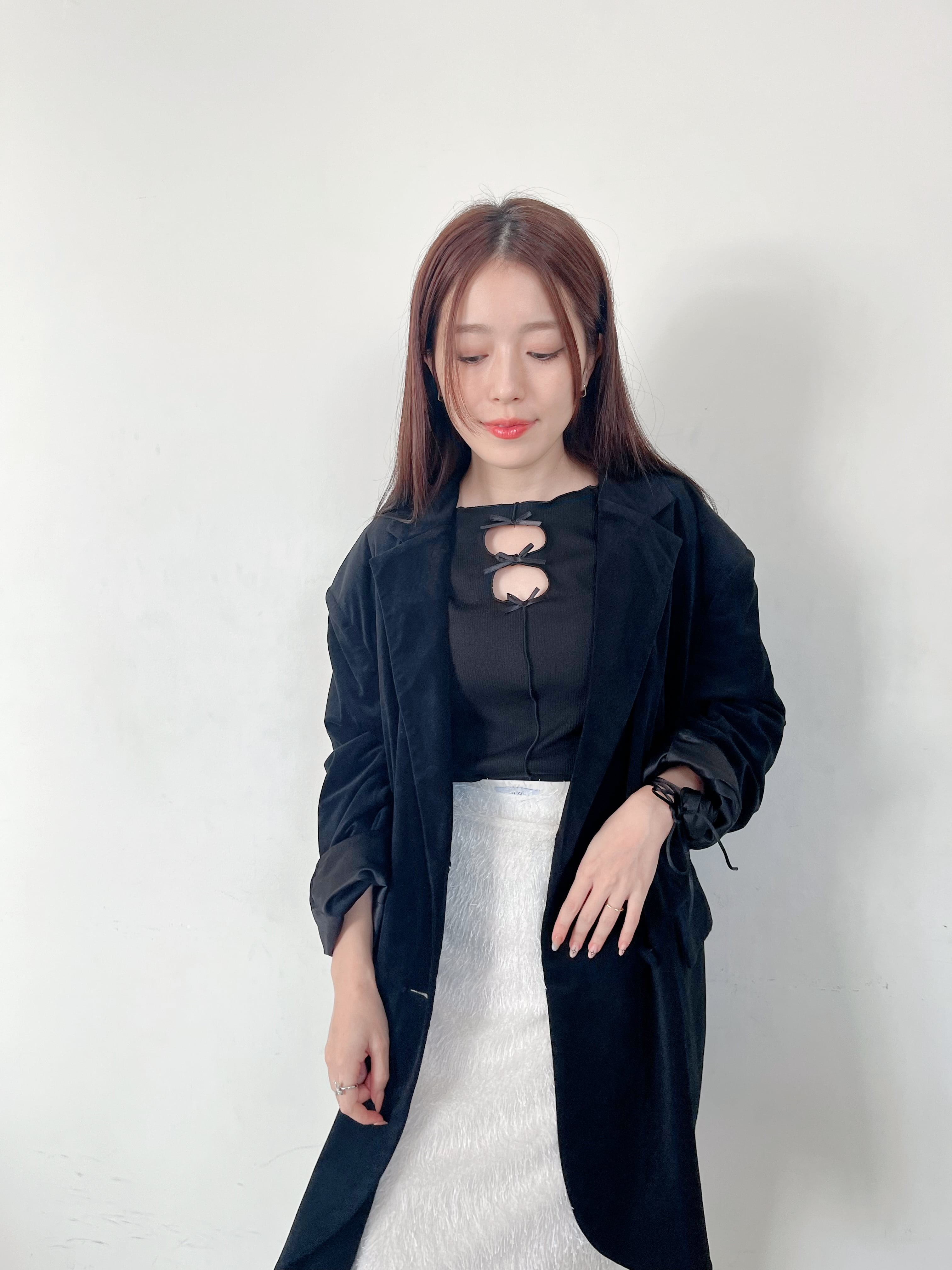 深めスリットで大人っぽく着こなせるディティールとカットワークとリボンで肌見せしながらも可愛らしさがあるディティールの2パターンが楽しめるアイテムです。