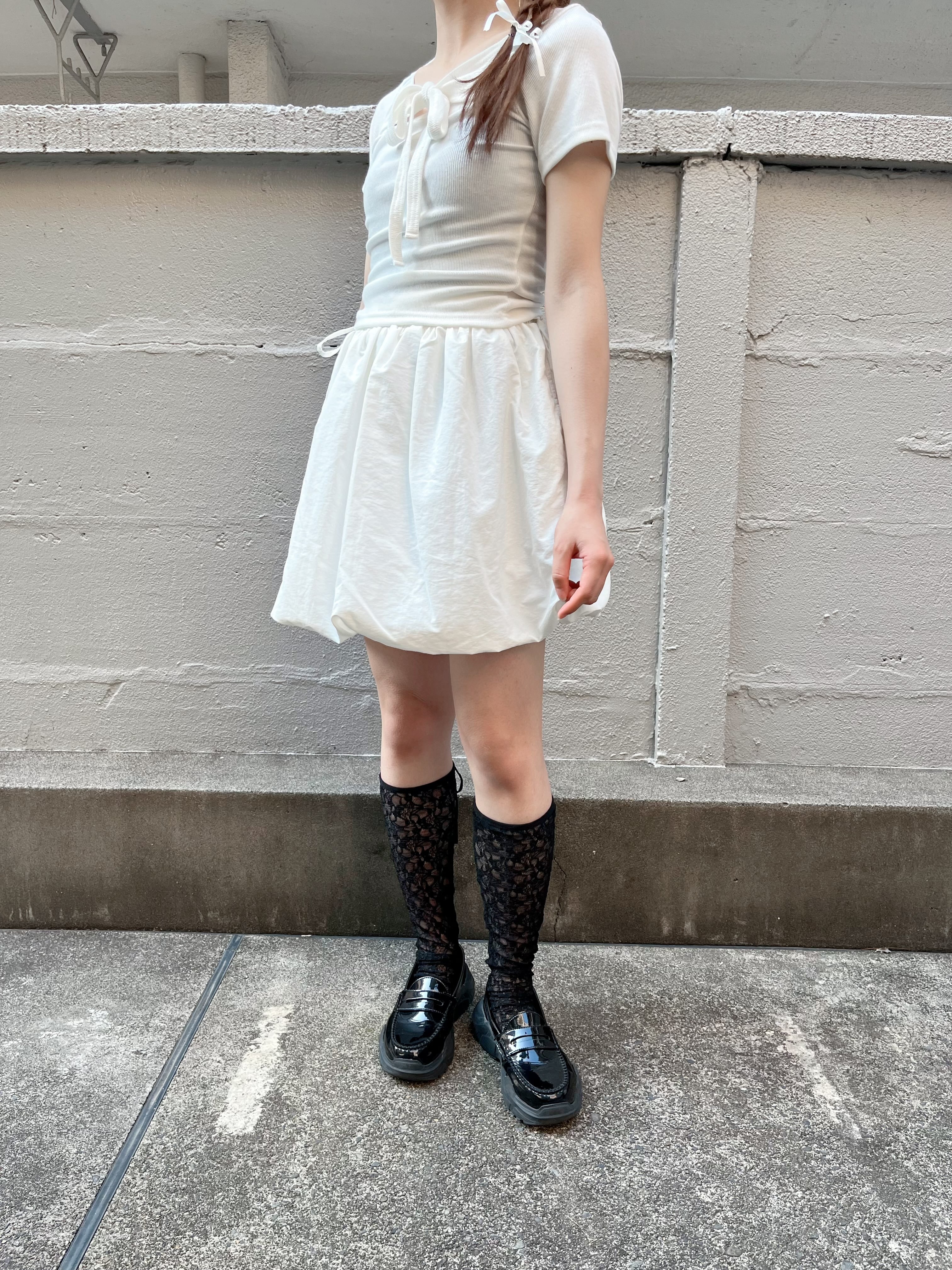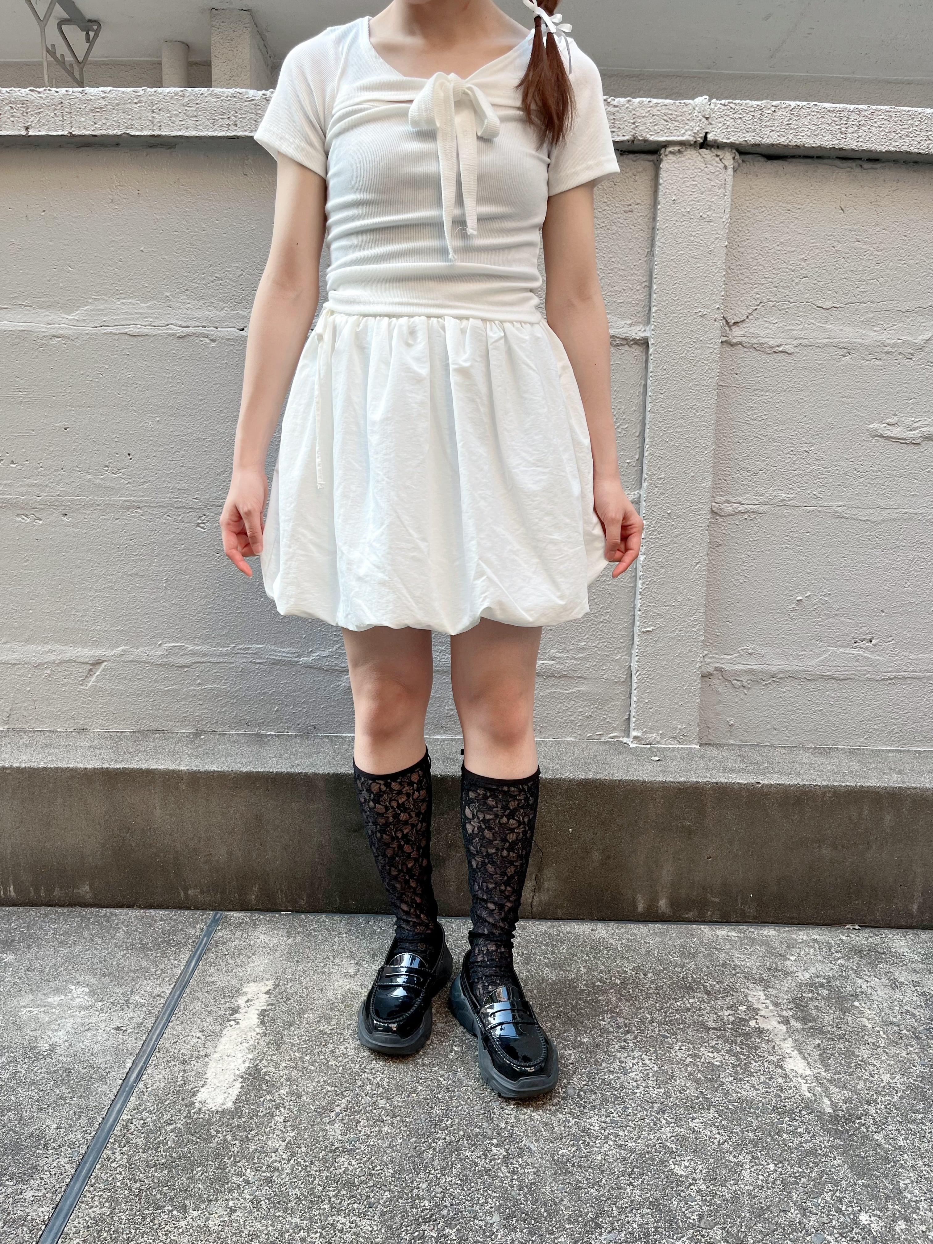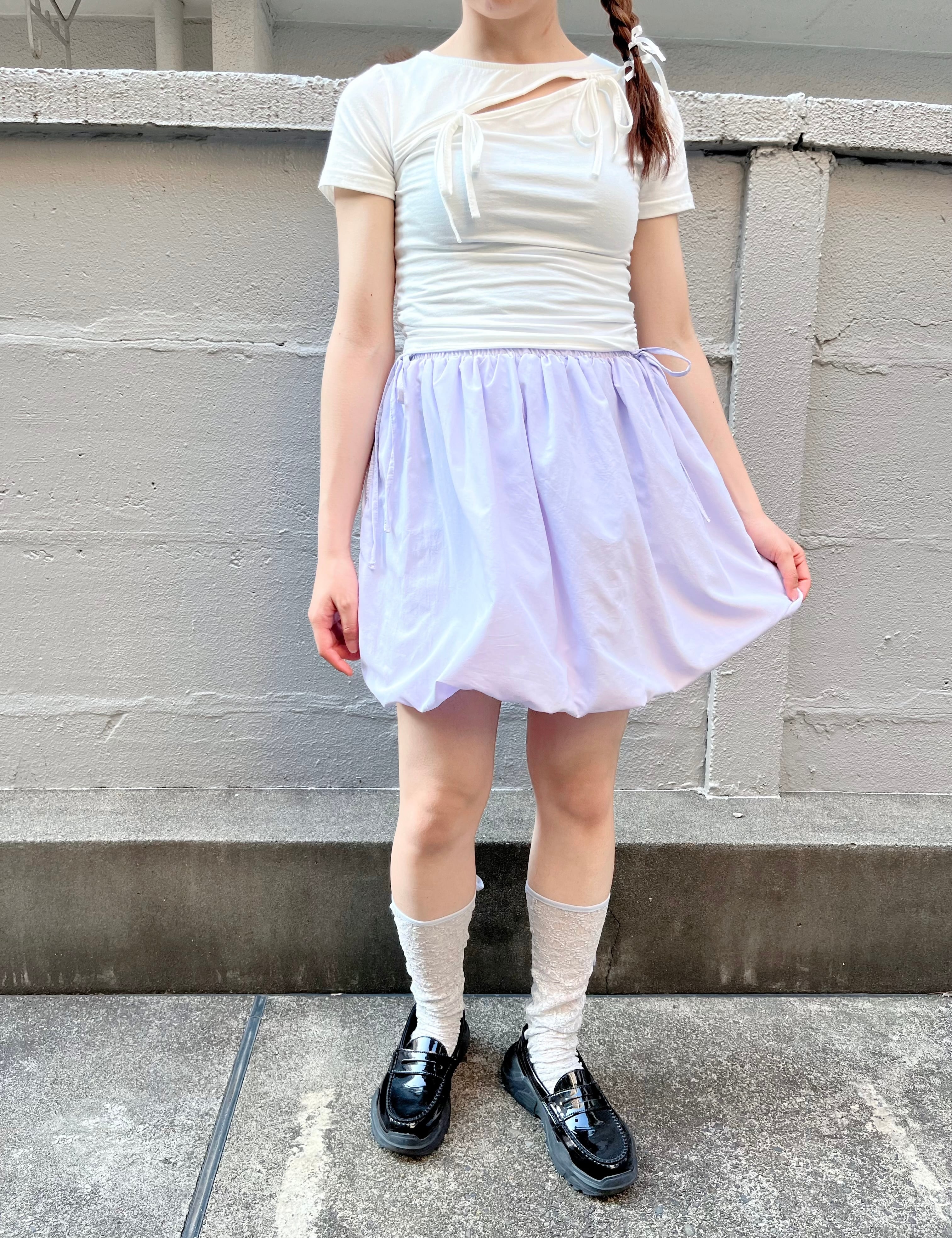 ウエストのサイドのリボンがポイントのパンプキンスカートです。