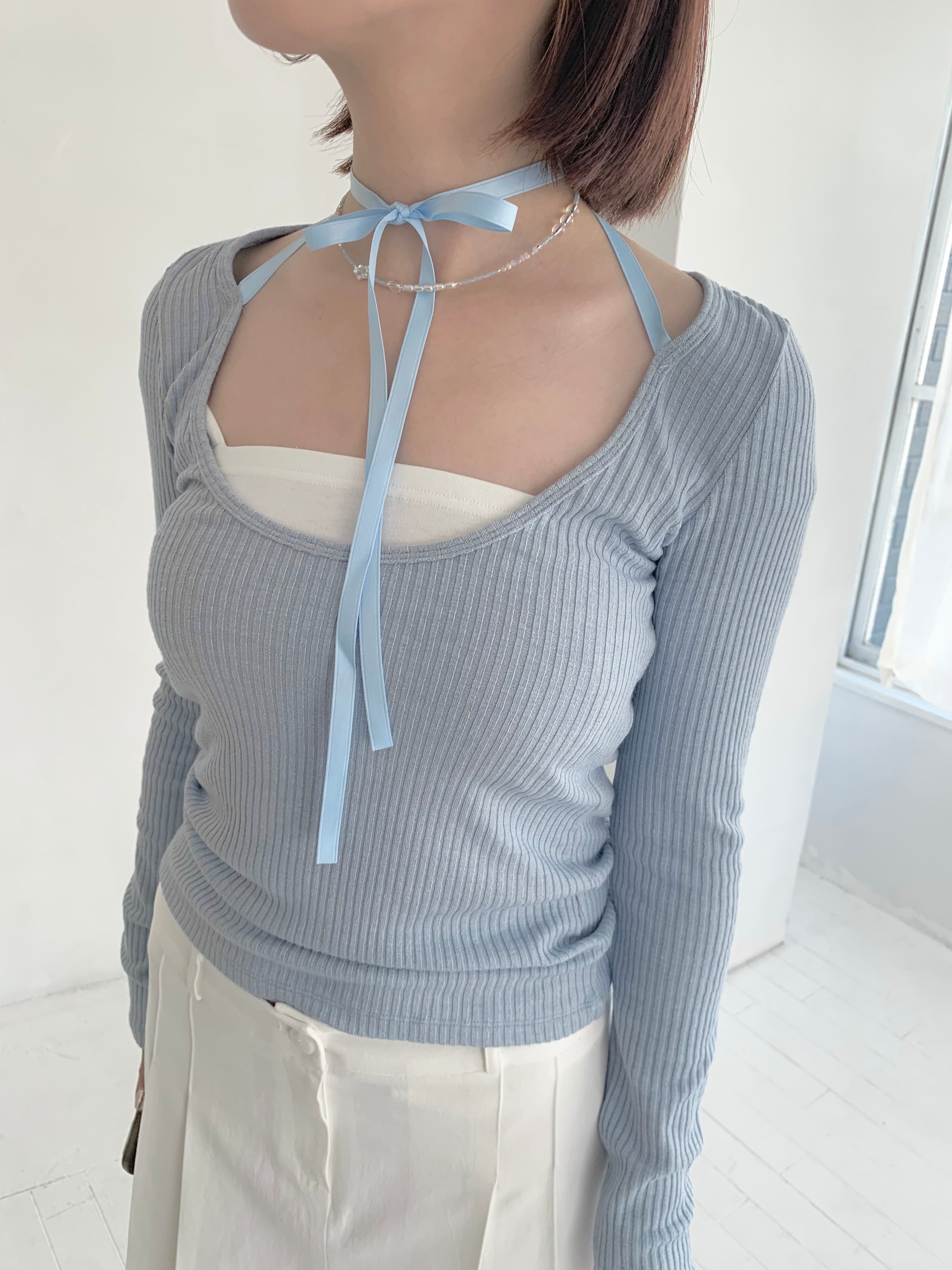 RIBBON CHOKER TOPS (hug0120)