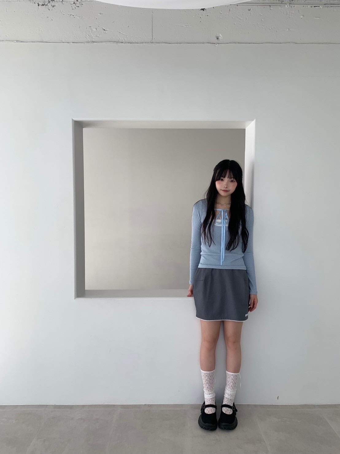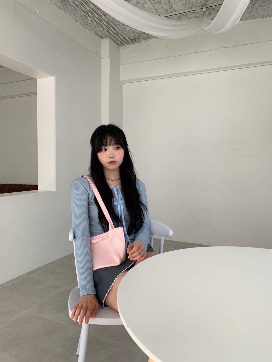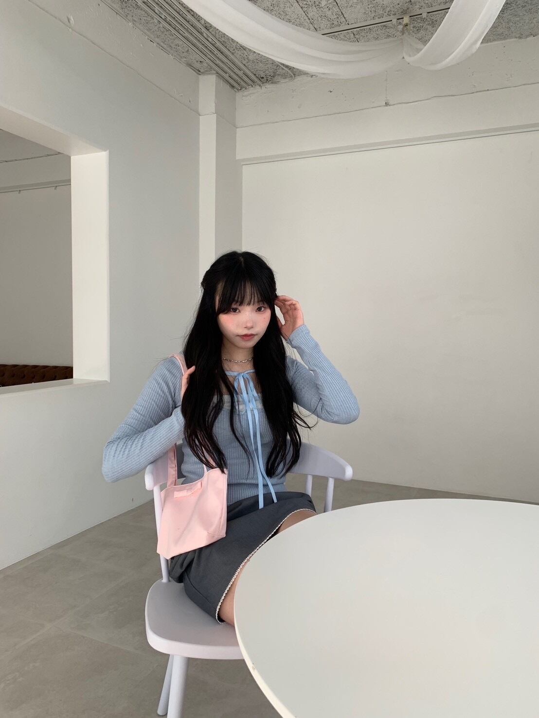 首元のリボンをチョーカー風にしたり、リボン結びしたりいろんなアレンジをお楽しみいただけます。hugiのボトムと相性が良くどのボトムとコーディネートしても可愛く着こなせる便利なアイテムです。