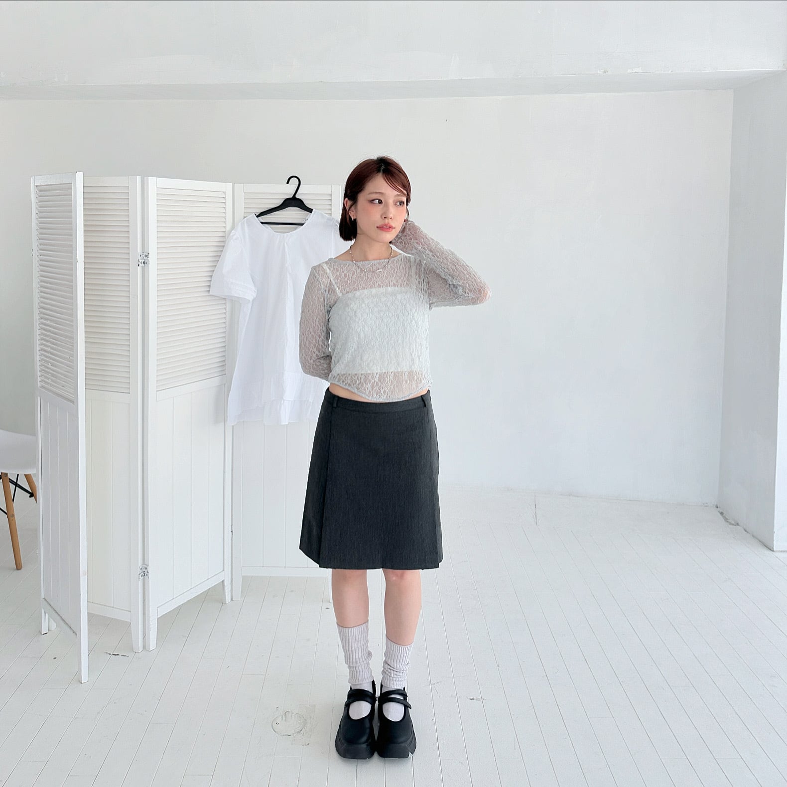 コンパクトなトップスと合わせるのはもちろん、オーバートップスと合わせてもバランス良く、トップスを選ばずコーディネートしやすい1枚です。
