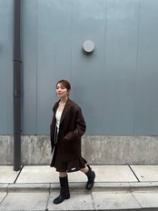 ゆったりとしたサイズ感。しっかりと丈があり、ざっくりと羽織って決まるデザインになります。